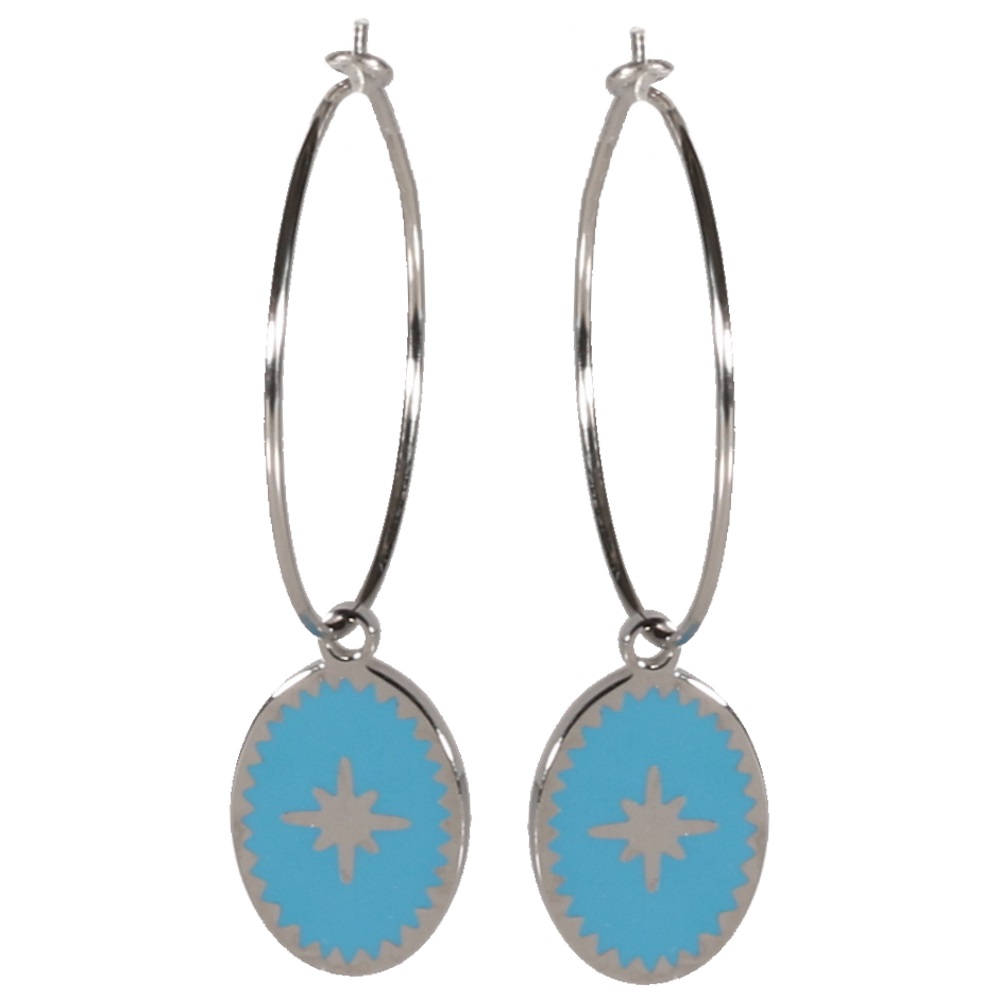 Description Boucles d'oreilles créoles avec pendant motif rose des vents en acier argenté et émail. Largeur 10 mm Hauteur 40 mm Diamètre 25 mm Matière(s) Acier , Email . L'acier utilisé dans la bijouterie existe sous plusieurs qualités. Nous utilisons principalement la qualité 316L, qualité qui est utilisée en chirurgie. Cet acier est donc inoxydable et reste très résistant. Fermoir Charnière Couleur(s) dominante(s) Argenté , Bleu Public Adolescent , Adulte . Genre Femme , Fille . Saison Indémodable . Thème(s) Symboles . Collection Astre sublime , Isabella Cliquez sur une matière, un thème, une couleur ou une collection pour voir tous les articles associés.
