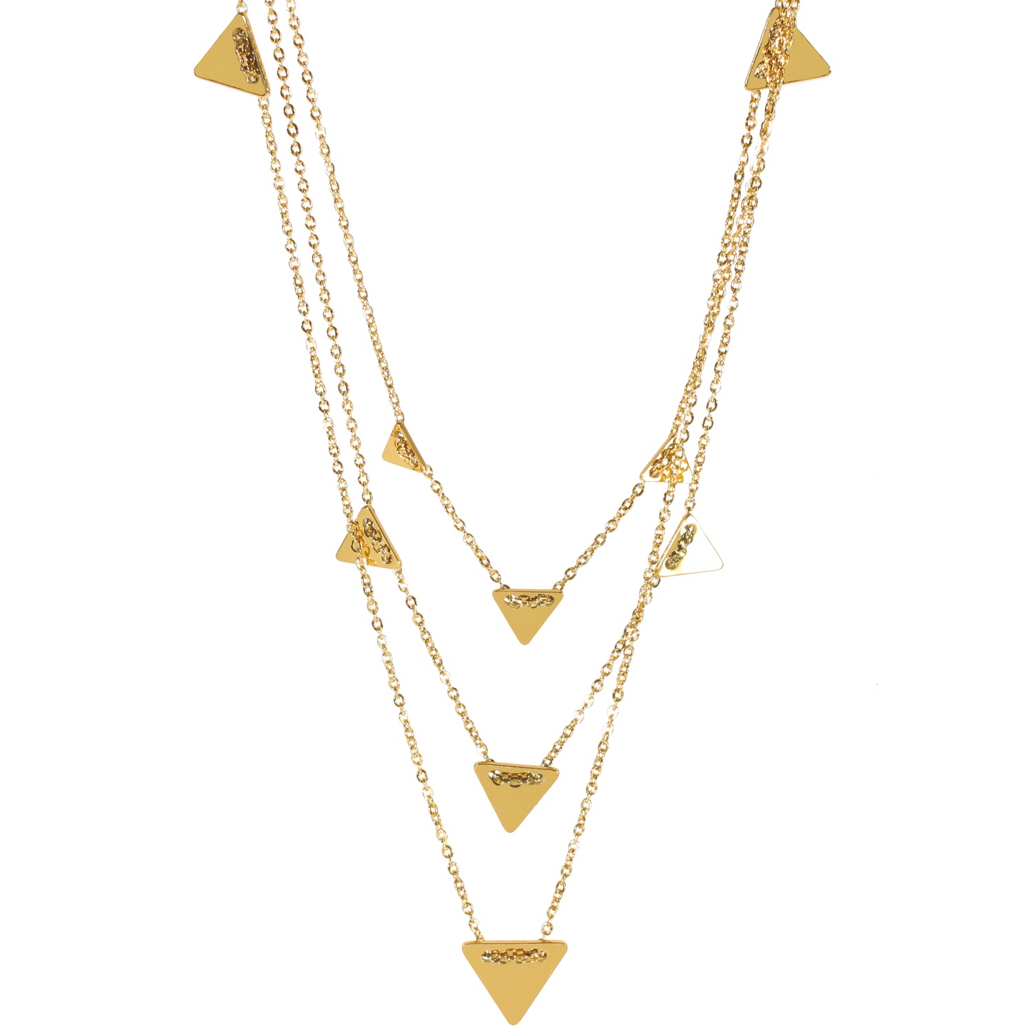 Description Collier triple rangs avec triangles en acier doré. Longueur 36+5 cm [Guide des tailles] Largeur 9/10/13 mm Matière(s) Acier . L'acier utilisé dans la bijouterie existe sous plusieurs qualités. Nous utilisons principalement la qualité 316L, qualité qui est utilisée en chirurgie. Cet acier est donc inoxydable et reste très résistant. Fermoir Mousqueton Couleur(s) dominante(s) Doré Public Adolescent , Adulte . Genre Femme , Fille . Saison Indémodable . Collection Myriade Cliquez sur une matière, un thème, une couleur ou une collection pour voir tous les articles associés.