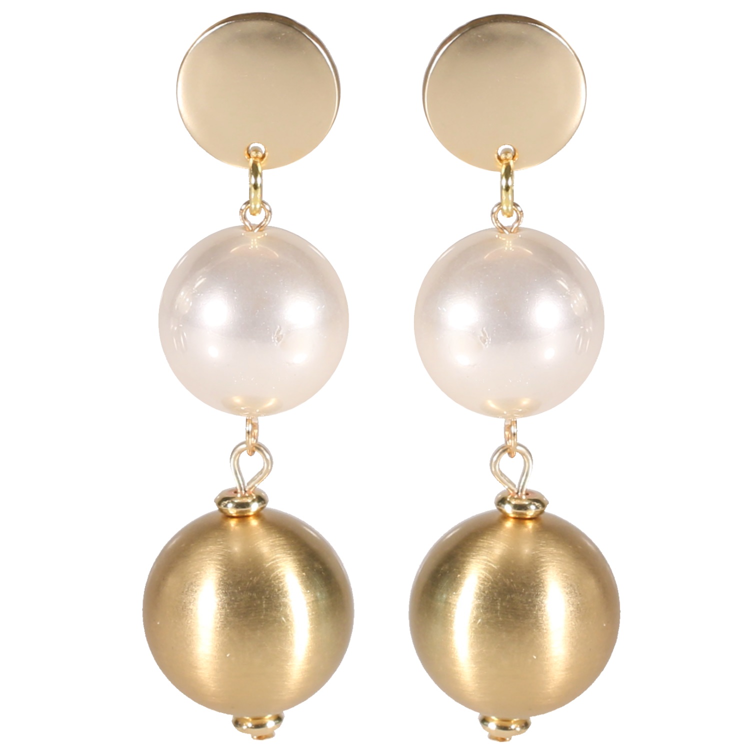 Description Boucles d'oreilles pendantes en métal doré et grosses perles synthétiques. Cliquez sur une matière, un thème, une couleur ou une collection pour voir tous les articles associés.