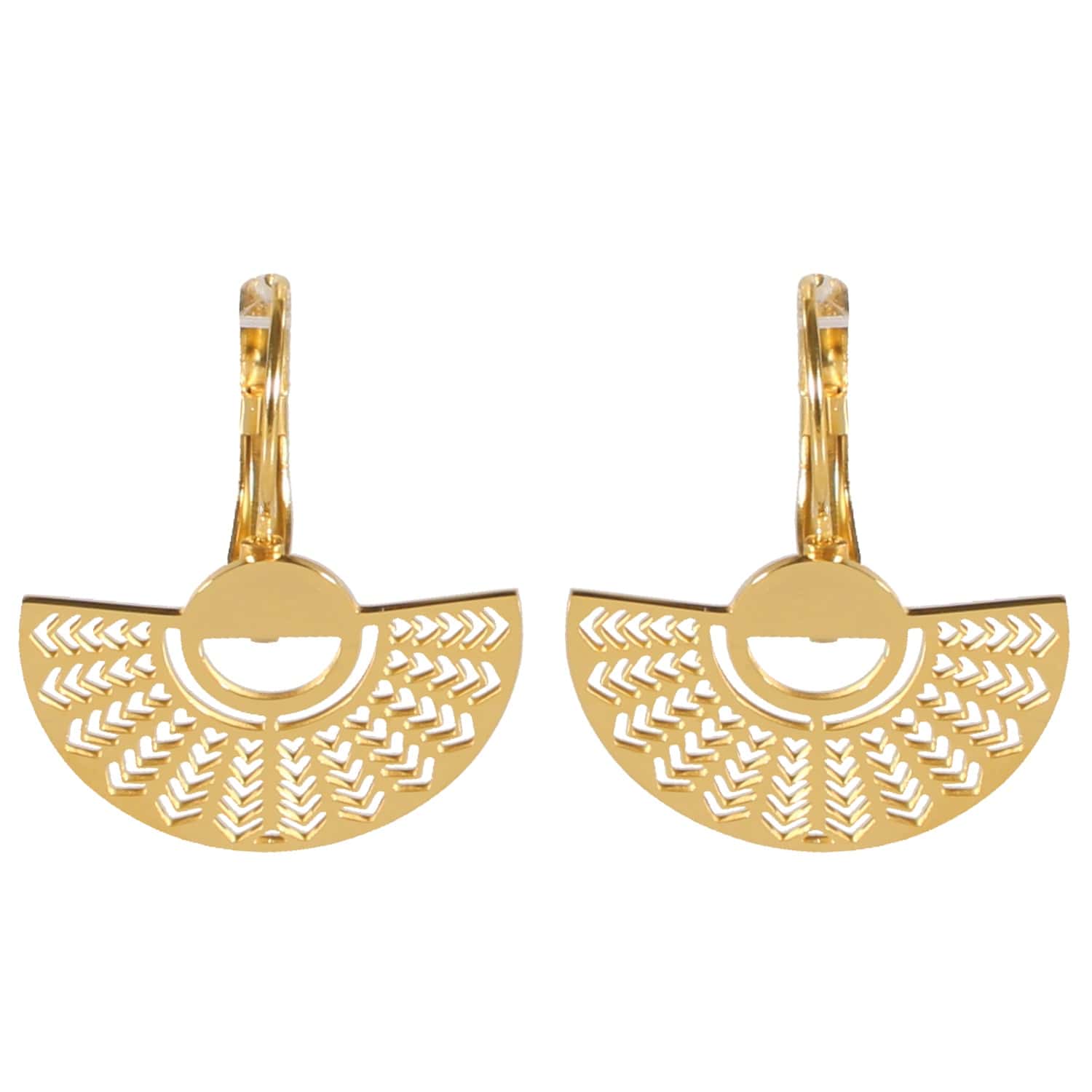 Description Boucles d'oreilles pendantes en acier doré. Largeur 25 mm Hauteur 30 mm Matière(s) Acier . L'acier utilisé dans la bijouterie existe sous plusieurs qualités. Nous utilisons principalement la qualité 316L, qualité qui est utilisée en chirurgie. Cet acier est donc inoxydable et reste très résistant. Fermoir Dormeuses Couleur(s) dominante(s) Doré Public Adolescent , Adulte . Genre Femme , Fille . Saison Collection Indian spirit Cliquez sur une matière, un thème, une couleur ou une collection pour voir tous les articles associés.