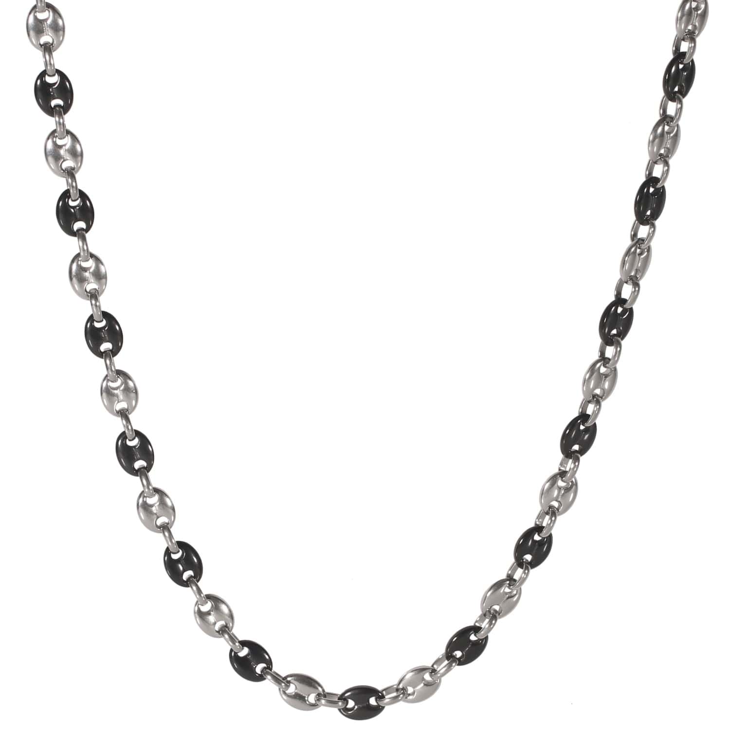 Description Collier chaîne grains de café en acier argenté et acier de couleur noire. Cliquez sur une matière, un thème, une couleur ou une collection pour voir tous les articles associés.