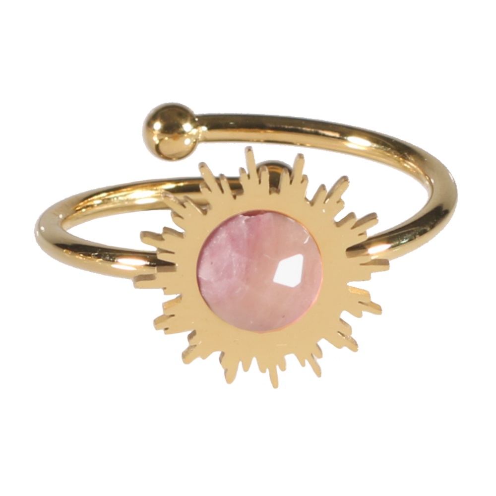 Bague avec soleil en acier doré monté d'une pierre naturelle.