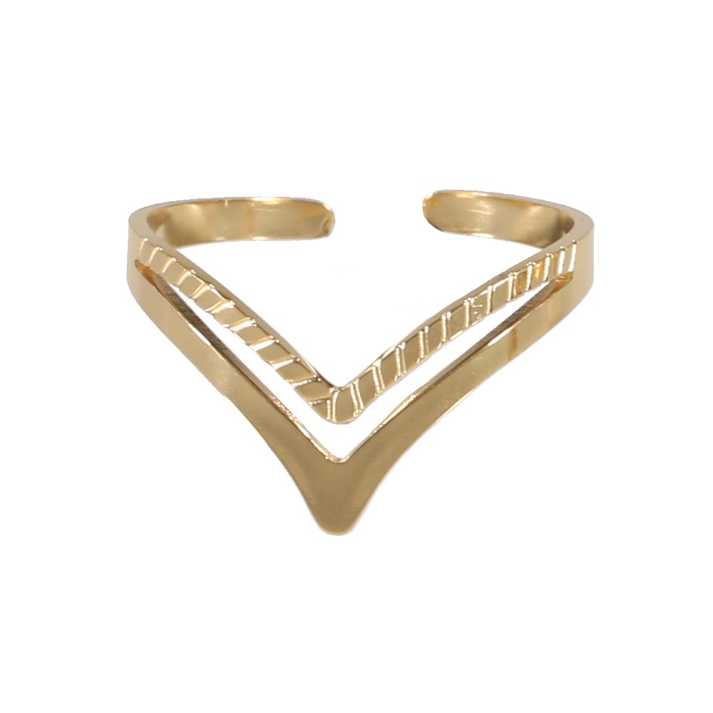 Description Bague en forme de V en acier doré. Taille ajustable. Largeur 10 mm Matière(s) Acier . L'acier utilisé dans la bijouterie existe sous plusieurs qualités. Nous utilisons principalement la qualité 316L, qualité qui est utilisée en chirurgie. Cet acier est donc inoxydable et reste très résistant. Fermoir Aucun À noter Taille ajustable Couleur(s) dominante(s) Doré Public Adolescent , Adulte . Genre Femme , Fille . Saison Indémodable . Cliquez sur une matière, un thème, une couleur ou une collection pour voir tous les articles associés.