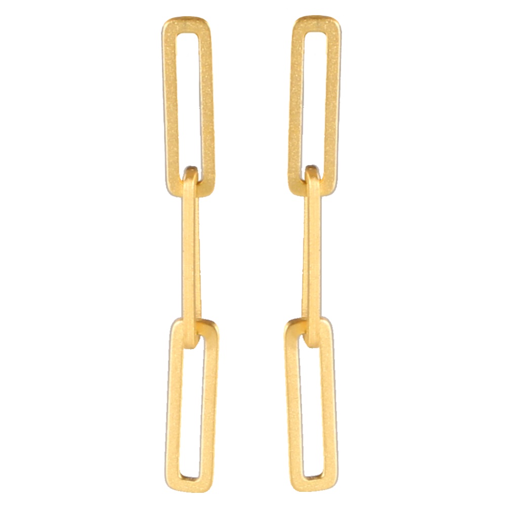 Description Boucles d'oreilles pendantes sous forme de chaîne rectangulaire en acier doré. Largeur 4 mm Hauteur 40 mm Matière(s) Acier . L'acier utilisé dans la bijouterie existe sous plusieurs qualités. Nous utilisons principalement la qualité 316L, qualité qui est utilisée en chirurgie. Cet acier est donc inoxydable et reste très résistant. Fermoir Tiges poussettes Couleur(s) dominante(s) Doré Public Adolescent , Adulte . Genre Femme , Fille . Saison Indémodable . Collection Fashion metal , Royale inca Cliquez sur une matière, un thème, une couleur ou une collection pour voir tous les articles associés.