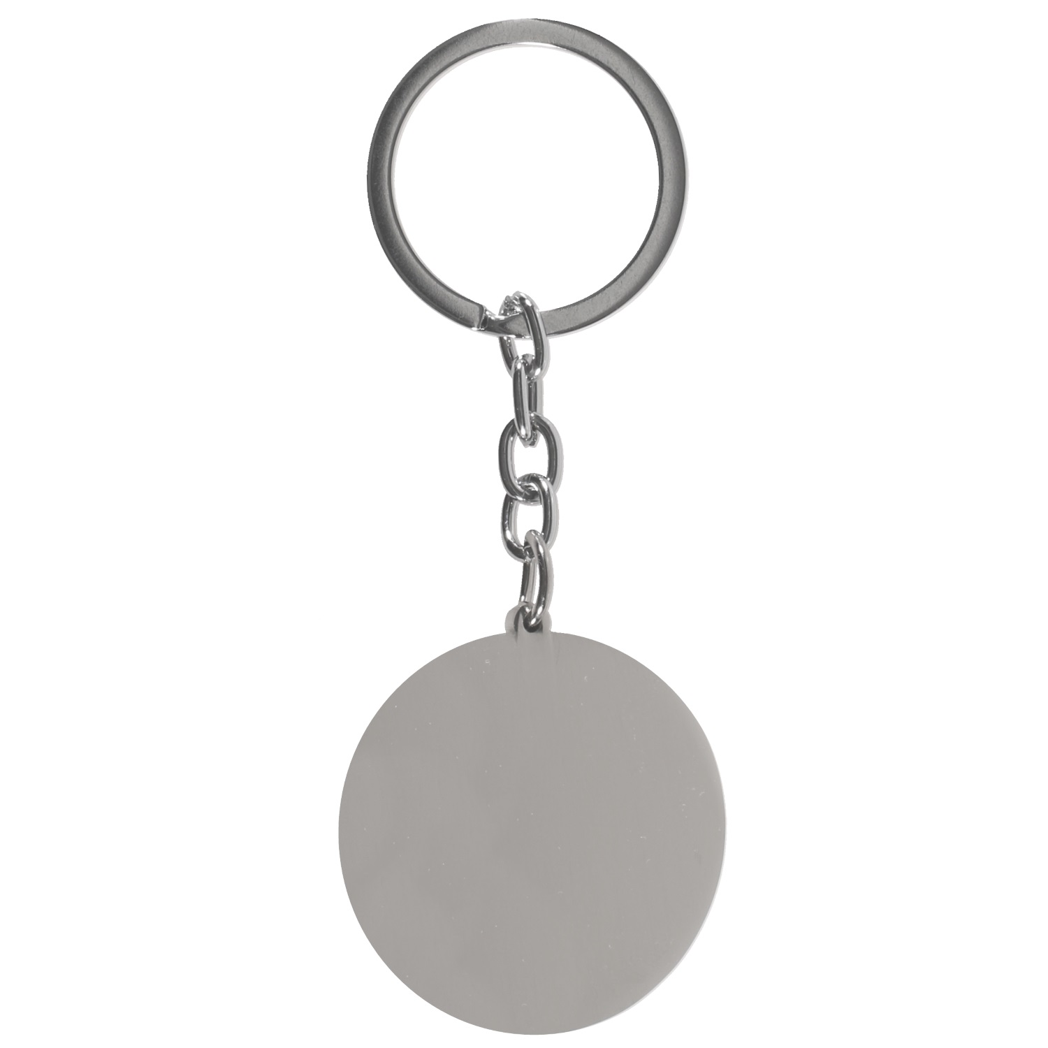 Porte-clés pastille ronde lisse en acier argenté.