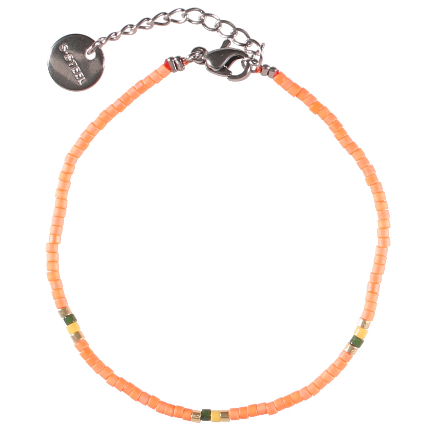 Description Bracelet composé de perles cylindriques heishi en résine synthétique de couleur acidulée. Fermoir mousqueton en acier argenté avec une rallonge de 3 cm. Longueur 15+3 cm [Guide des tailles] Largeur 2 mm Matière(s) Acier , Résine . L'acier utilisé dans la bijouterie existe sous plusieurs qualités. Nous utilisons principalement la qualité 316L, qualité qui est utilisée en chirurgie. Cet acier est donc inoxydable et reste très résistant. Fermoir Mousqueton Couleur(s) dominante(s) Argenté , Orange Public Adolescent , Adulte . Genre Femme , Fille . Saison Hiver . Collection Heishi Cliquez sur une matière, un thème, une couleur ou une collection pour voir tous les articles associés.