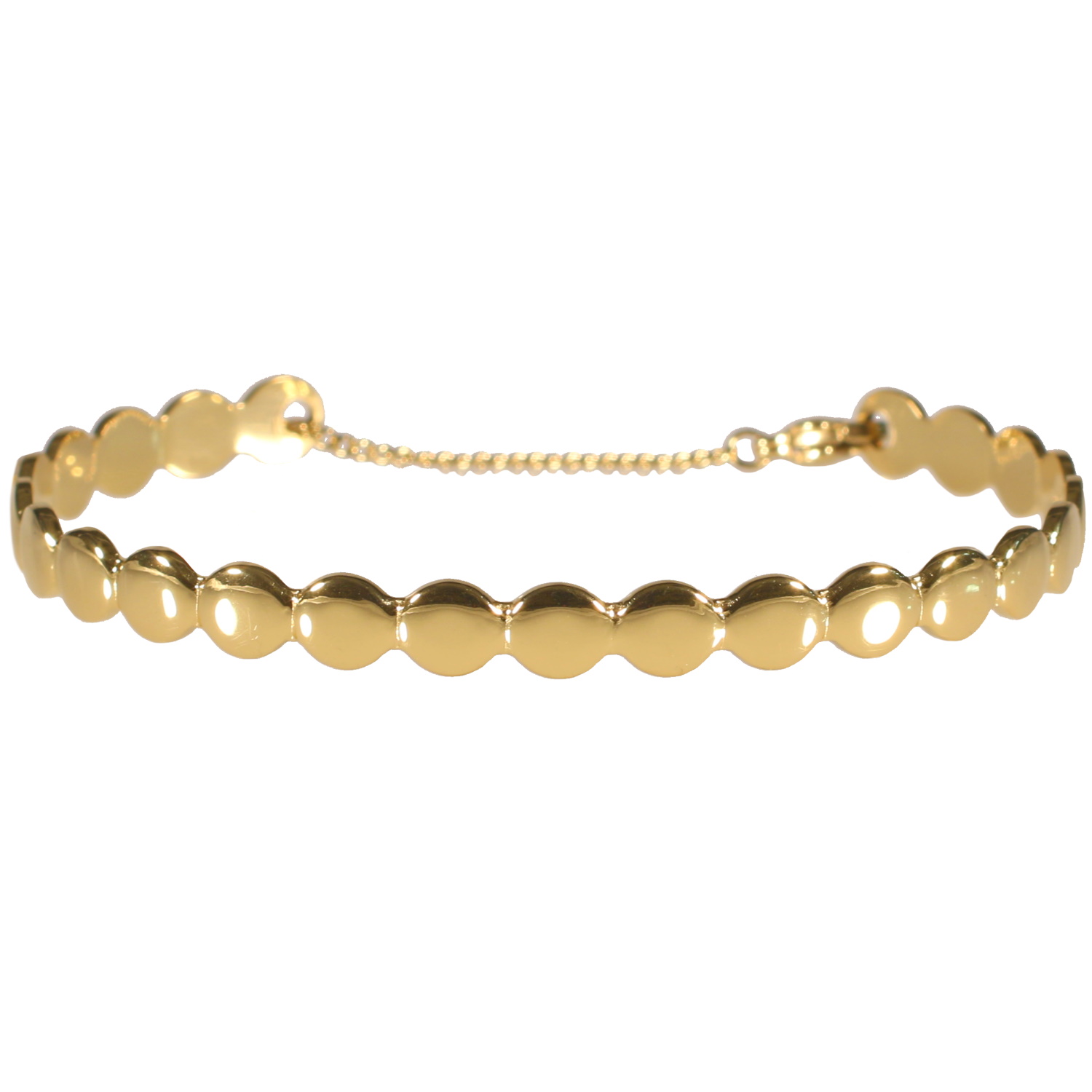 Description Bracelet jonc rigide composé de pastilles rondes en acier doré. Fermoir mousqueton avec chaînette pour resserrer le jonc. Largeur 6 mm Diamètre 60 mm [Guide des tailles] Matière(s) Acier . L'acier utilisé dans la bijouterie existe sous plusieurs qualités. Nous utilisons principalement la qualité 316L, qualité qui est utilisée en chirurgie. Cet acier est donc inoxydable et reste très résistant. Fermoir Mousqueton Couleur(s) dominante(s) Doré Public Adolescent , Adulte . Genre Femme , Fille . Saison Indémodable . Collection Punto Cliquez sur une matière, un thème, une couleur ou une collection pour voir tous les articles associés.