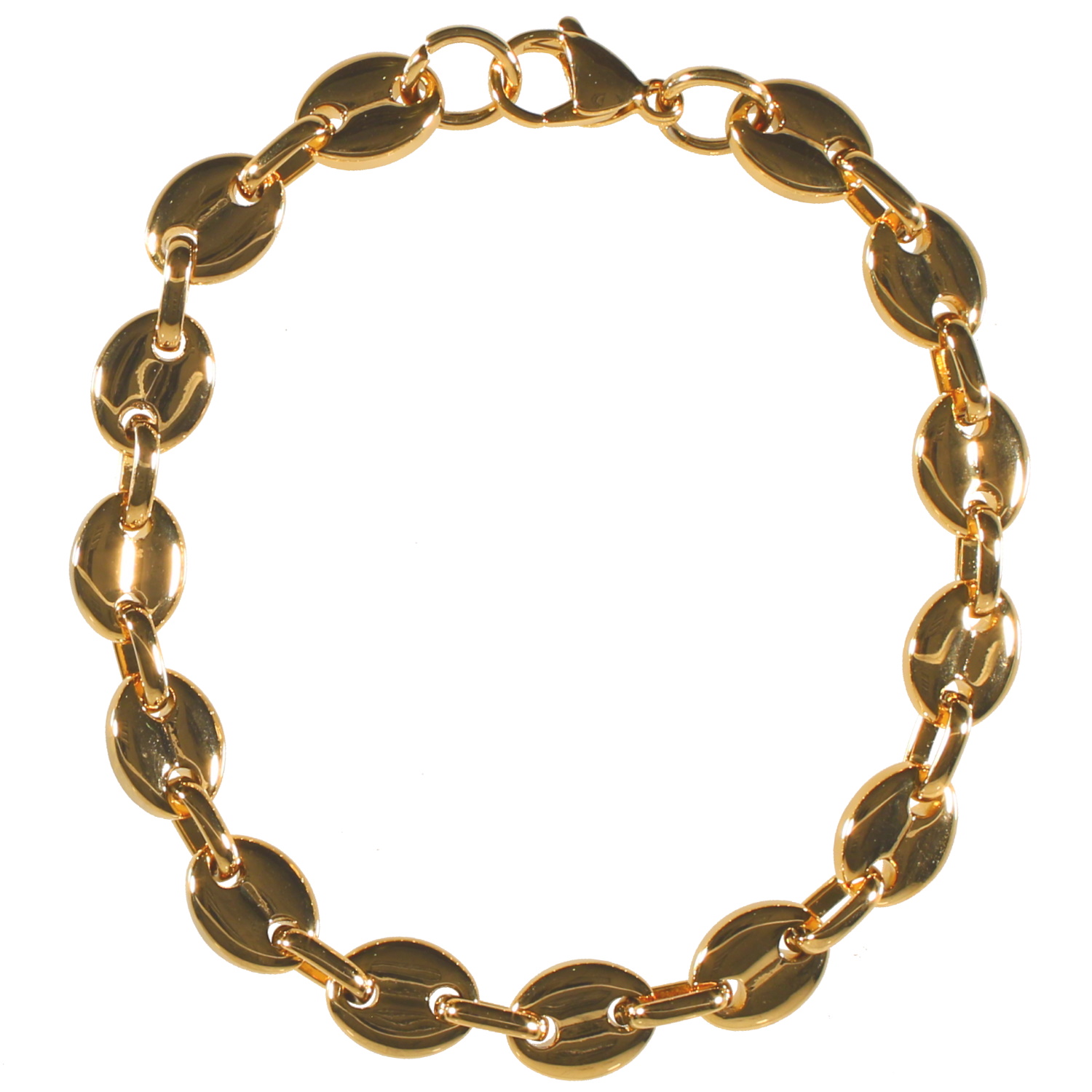 Description Bracelet grain de café en acier doré. Longueur 21 cm [Guide des tailles] Largeur 10 mm Matière(s) Acier . L'acier utilisé dans la bijouterie existe sous plusieurs qualités. Nous utilisons principalement la qualité 316L, qualité qui est utilisée en chirurgie. Cet acier est donc inoxydable et reste très résistant. Fermoir Mousqueton Couleur(s) dominante(s) Doré Public Adolescent , Adulte . Genre Garçon , Homme . Saison Indémodable . Collection Homme actuel Rayon en magasin T41 Cliquez sur une matière, un thème, une couleur ou une collection pour voir tous les articles associés.