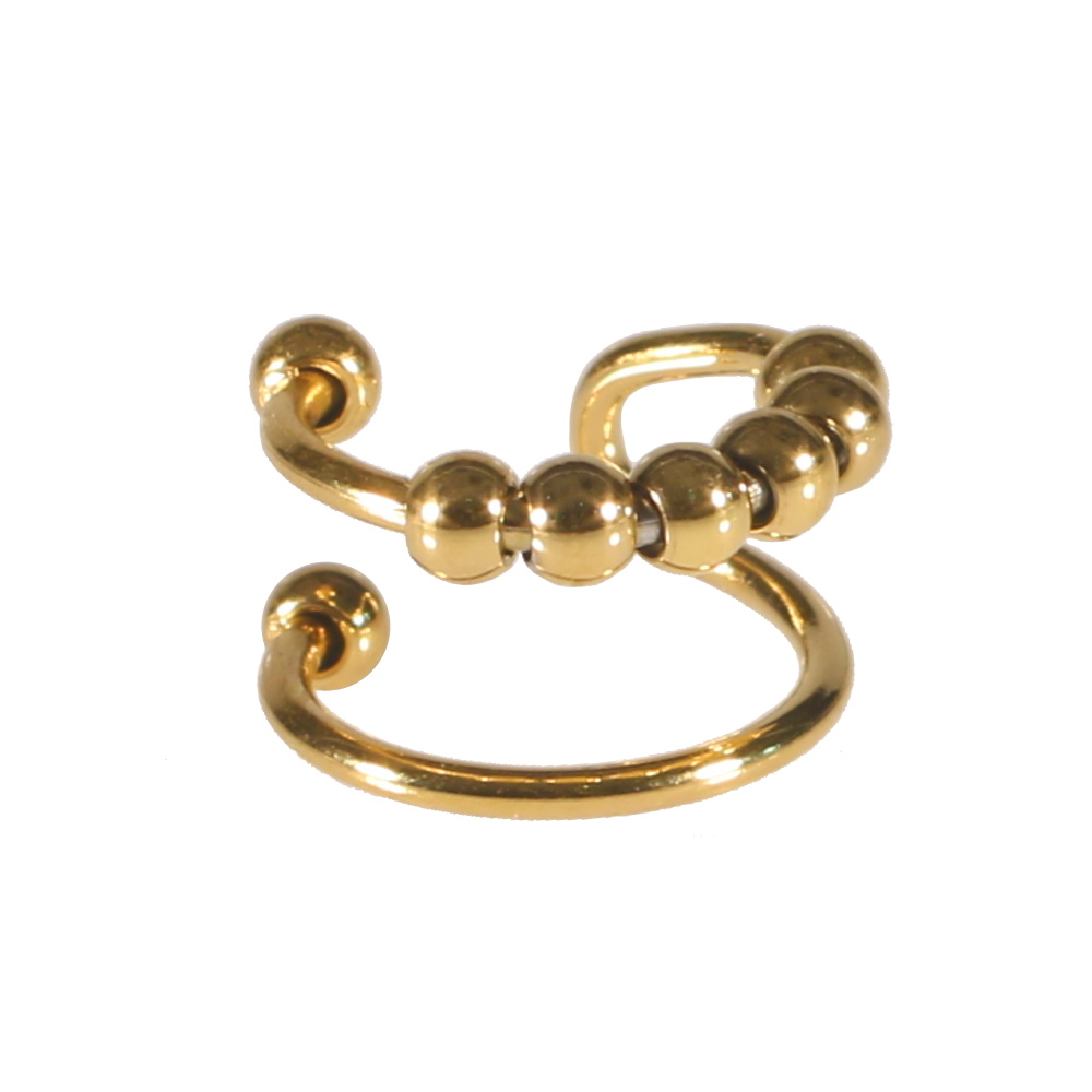 Description Bague d'oreilles avec perles en acier doré. Taille ajustable. Largeur 10 mm Matière(s) Acier . L'acier utilisé dans la bijouterie existe sous plusieurs qualités. Nous utilisons principalement la qualité 316L, qualité qui est utilisée en chirurgie. Cet acier est donc inoxydable et reste très résistant. Fermoir Aucun Couleur(s) dominante(s) Doré Public Adolescent , Adulte . Genre Femme , Fille . Saison Indémodable . Collection Elektra Cliquez sur une matière, un thème, une couleur ou une collection pour voir tous les articles associés.