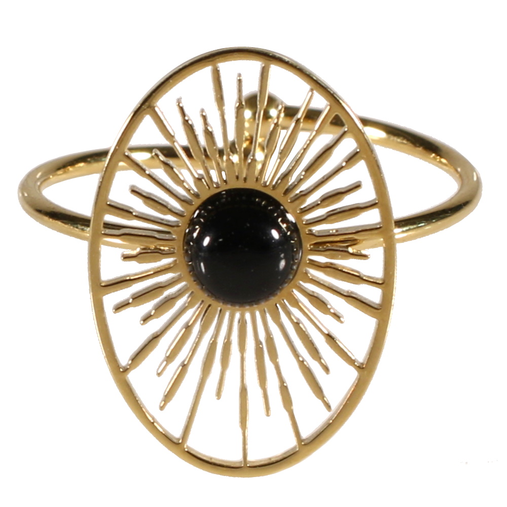 Description Bague avec rayons de soleil dans un cercle ovale en acier doré surmontée d'une pierre de couleur noire. Taille ajustable. Largeur 20 mm Matière(s) Acier , Rocaille . L'acier utilisé dans la bijouterie existe sous plusieurs qualités. Nous utilisons principalement la qualité 316L, qualité qui est utilisée en chirurgie. Cet acier est donc inoxydable et reste très résistant. Fermoir Aucun Couleur(s) dominante(s) Doré , Noir Public Adolescent , Adulte . Genre Femme , Fille . Saison Indémodable . Thème(s) Nature . Cliquez sur une matière, un thème, une couleur ou une collection pour voir tous les articles associés.