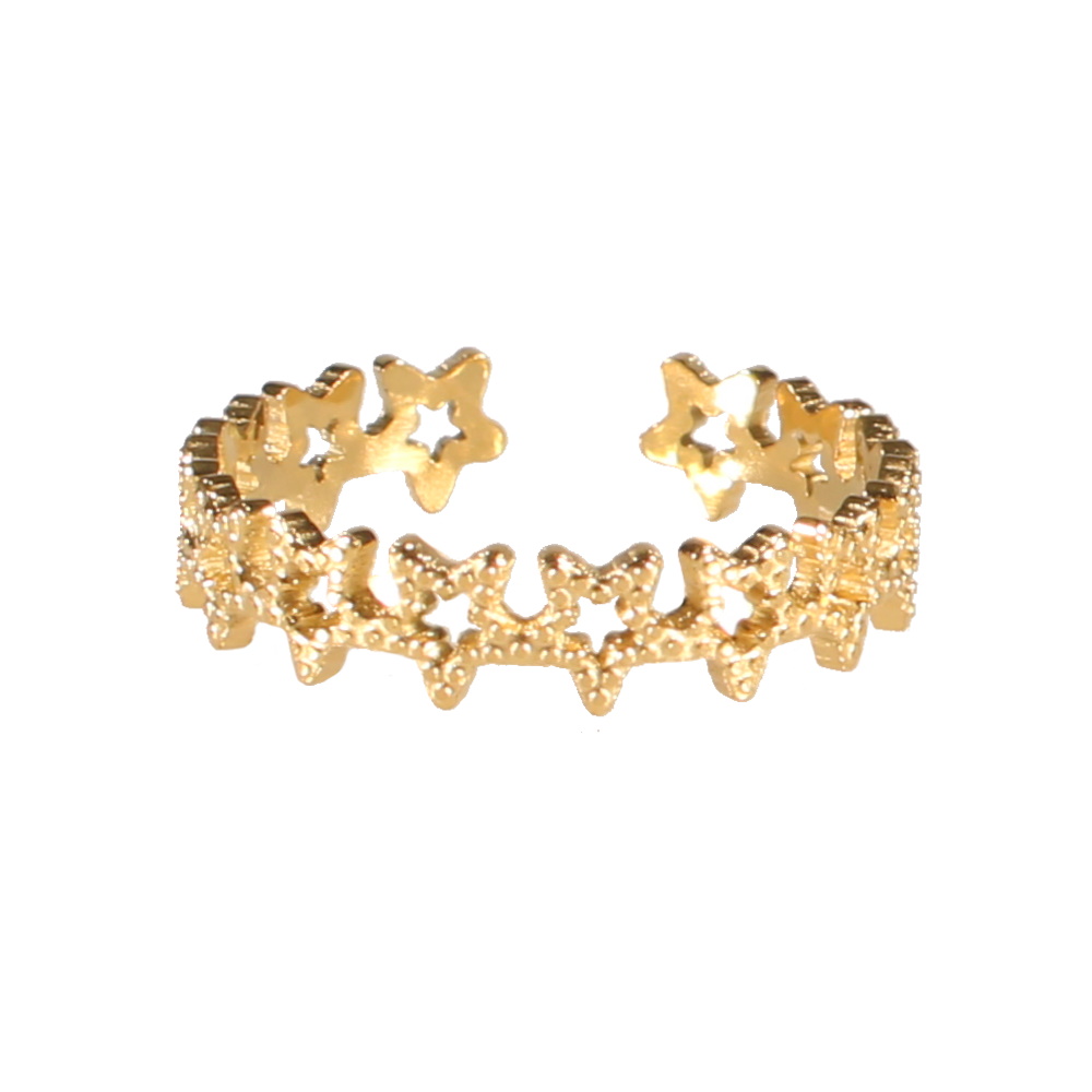 Description Bague au motif d'étoiles en acier doré. Taille ajustable. Largeur 5 mm Matière(s) Acier . L'acier utilisé dans la bijouterie existe sous plusieurs qualités. Nous utilisons principalement la qualité 316L, qualité qui est utilisée en chirurgie. Cet acier est donc inoxydable et reste très résistant. Fermoir Aucun Couleur(s) dominante(s) Doré Public Adolescent , Adulte . Genre Femme , Fille . Saison Indémodable . Thème(s) Nature . Collection Astre sublime Cliquez sur une matière, un thème, une couleur ou une collection pour voir tous les articles associés.
