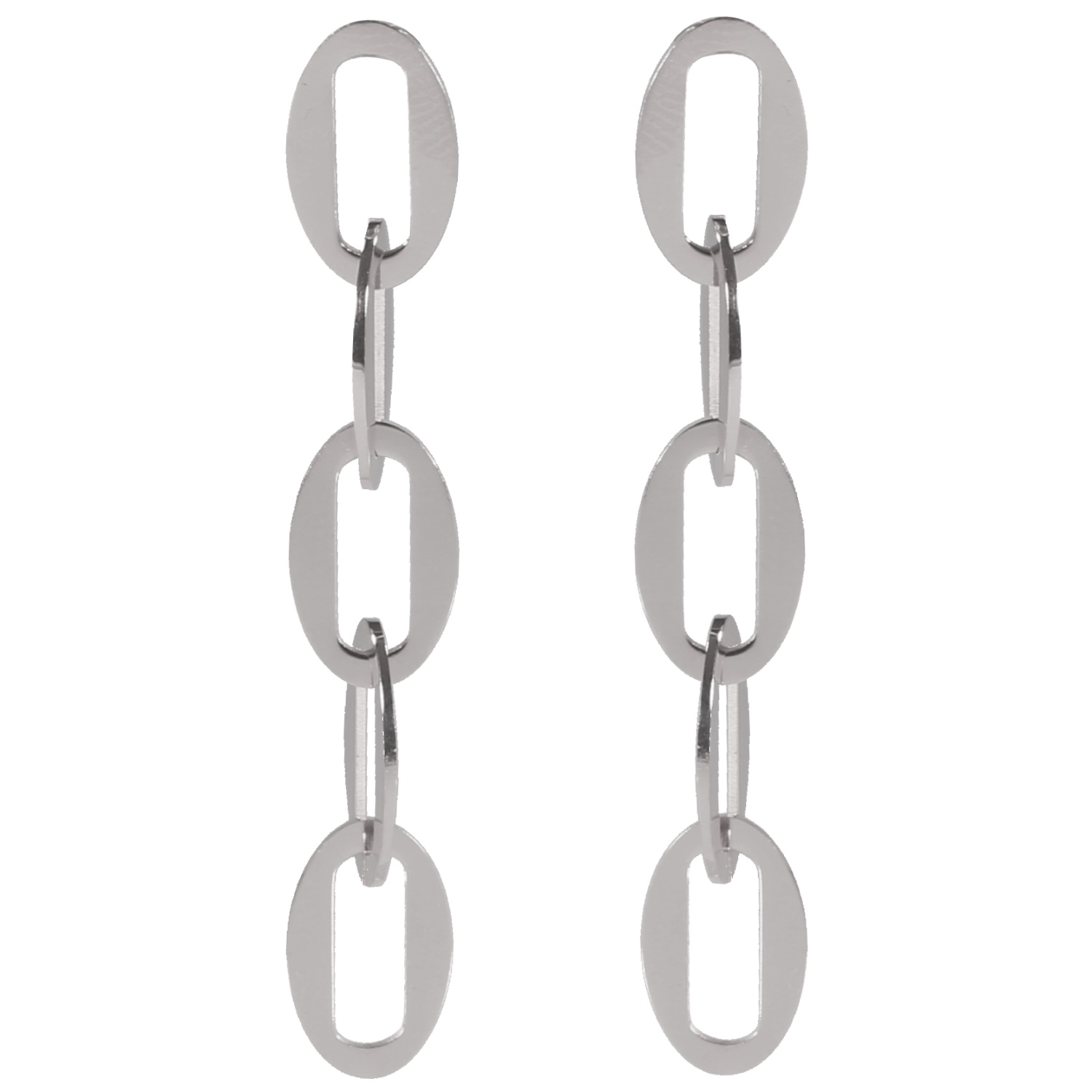 Description Boucles d'oreilles pendantes au motif de chaîne en acier argenté. Largeur 9 mm Hauteur 57 mm Matière(s) Acier . L'acier utilisé dans la bijouterie existe sous plusieurs qualités. Nous utilisons principalement la qualité 316L, qualité qui est utilisée en chirurgie. Cet acier est donc inoxydable et reste très résistant. Fermoir Tiges poussettes Couleur(s) dominante(s) Argenté Public Adolescent , Adulte . Genre Femme , Fille . Saison Indémodable . Collection Christine Cliquez sur une matière, un thème, une couleur ou une collection pour voir tous les articles associés.