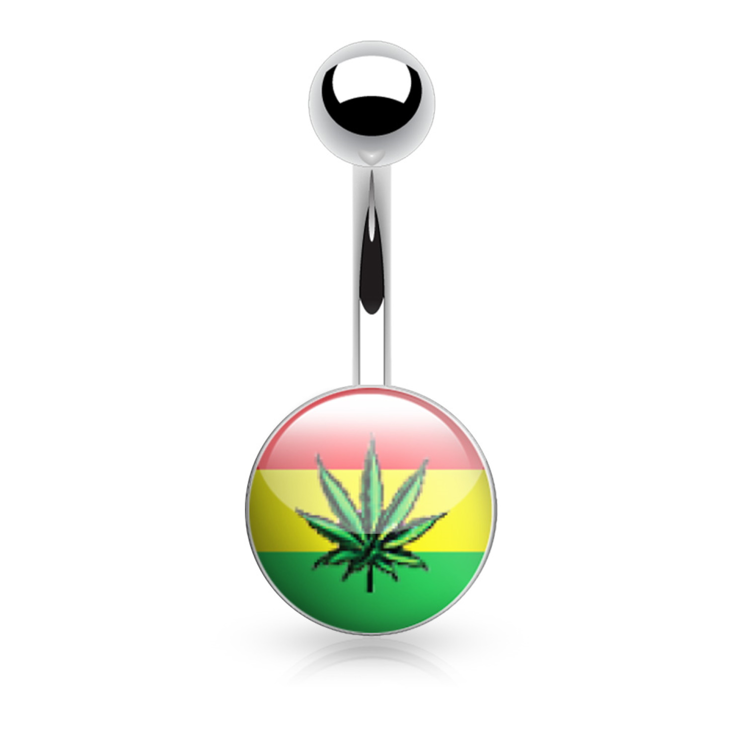 Piercing pour nombril en acier chirurgical 316L argenté et une boule avec le dessin symbolique rasta.