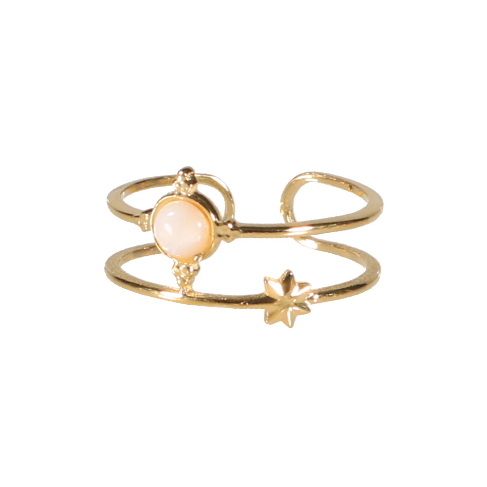 Bague double rangs avec une étoile en acier doré et une véritable coquille de nacre sertie clos.
