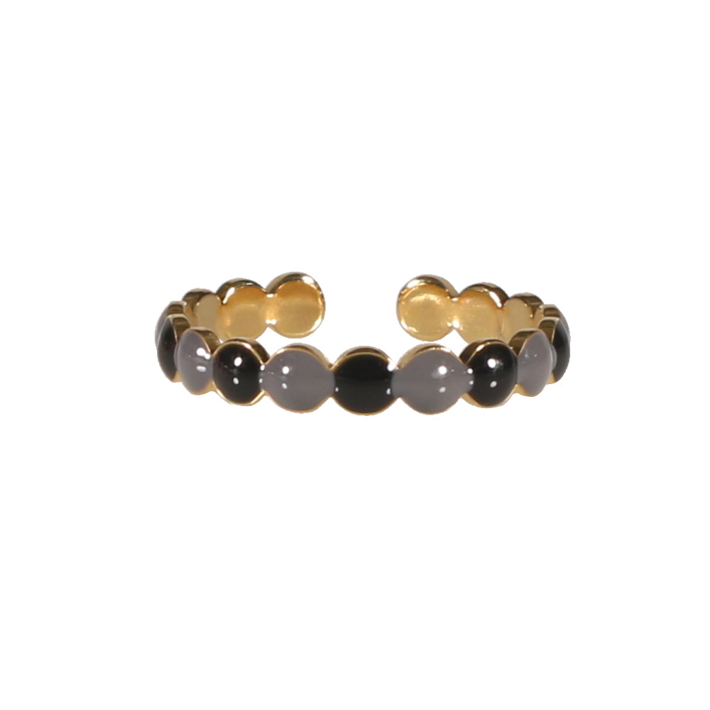 Description Bague en acier doré surmontée de pastilles rondes pavées d'émail de couleur noire et grise. Taille ajustable. Largeur 3 mm Matière(s) Acier , Email . L'acier utilisé dans la bijouterie existe sous plusieurs qualités. Nous utilisons principalement la qualité 316L, qualité qui est utilisée en chirurgie. Cet acier est donc inoxydable et reste très résistant. Fermoir Aucun Couleur(s) dominante(s) Doré , Gris , Noir Public Adolescent , Adulte . Genre Femme , Fille . Saison Indémodable . Cliquez sur une matière, un thème, une couleur ou une collection pour voir tous les articles associés.