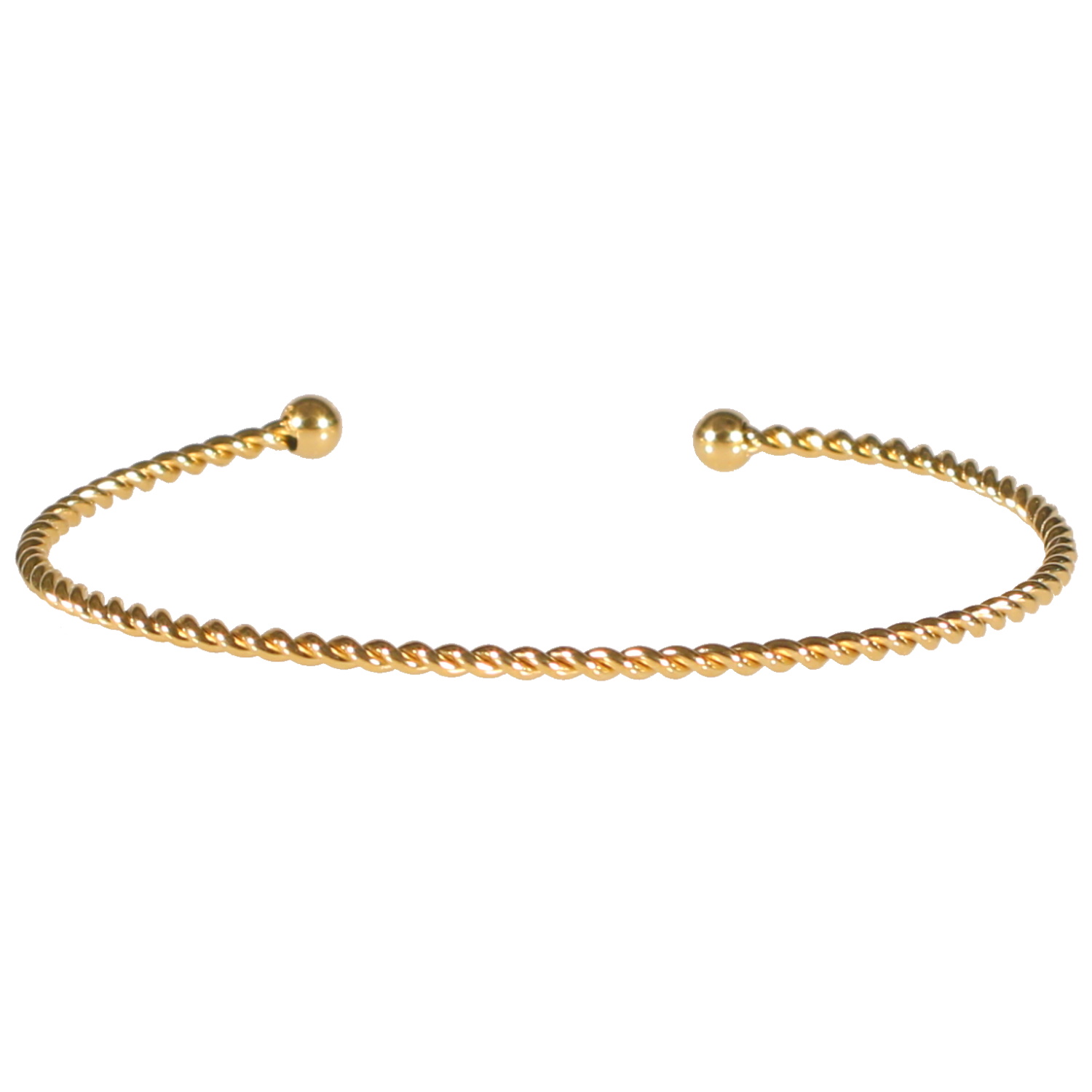 Description Bracelet jonc ouvert fil torsade en acier doré. Largeur 4 mm Diamètre 60 mm [Guide des tailles] Matière(s) Acier . L'acier utilisé dans la bijouterie existe sous plusieurs qualités. Nous utilisons principalement la qualité 316L, qualité qui est utilisée en chirurgie. Cet acier est donc inoxydable et reste très résistant. Fermoir Aucun Couleur(s) dominante(s) Doré Public Adolescent , Adulte . Genre Femme , Fille . Saison Indémodable . Cliquez sur une matière, un thème, une couleur ou une collection pour voir tous les articles associés.