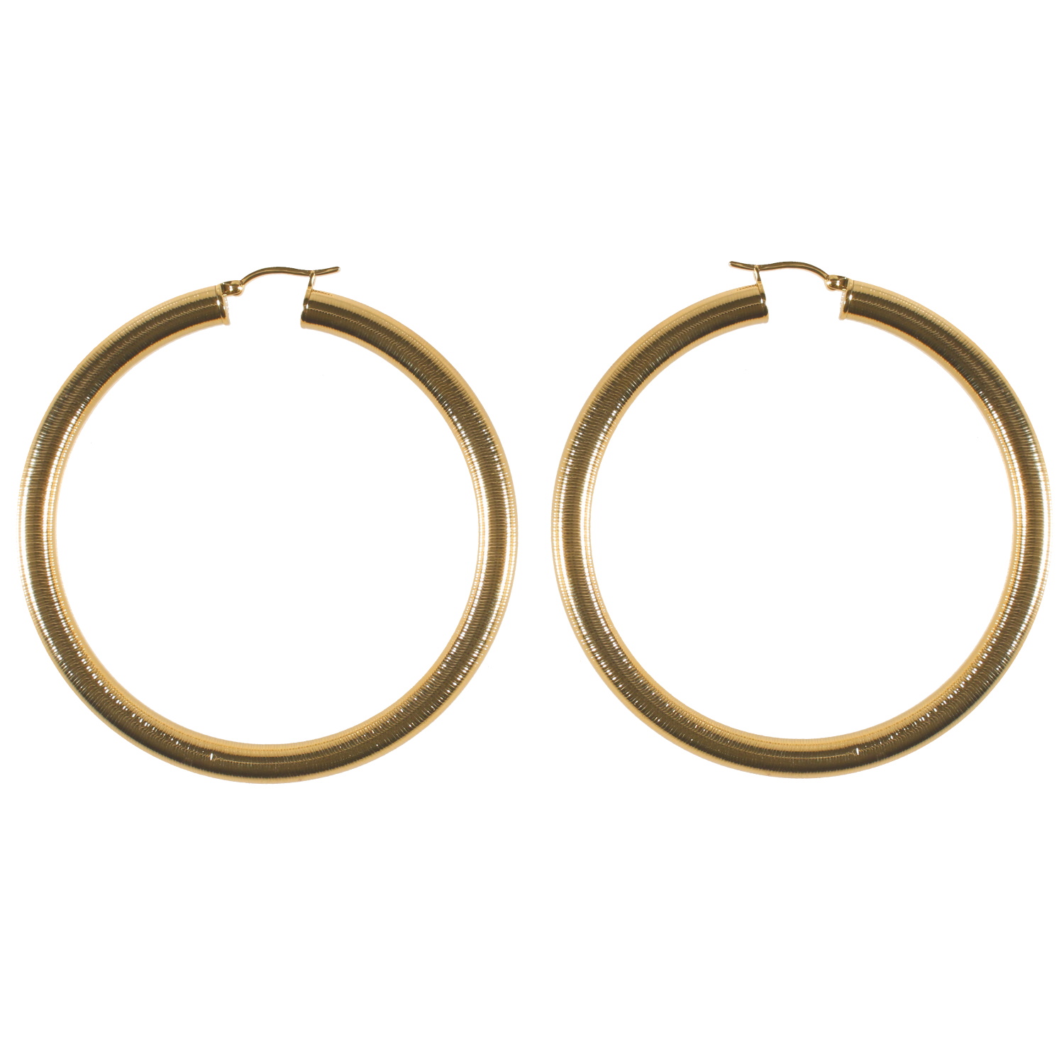 Description Boucles d'oreilles créoles en acier doré. Largeur 6 mm Diamètre 60/72 mm [Guide des tailles] Matière(s) Acier . L'acier utilisé dans la bijouterie existe sous plusieurs qualités. Nous utilisons principalement la qualité 316L, qualité qui est utilisée en chirurgie. Cet acier est donc inoxydable et reste très résistant. Fermoir Charnière Couleur(s) dominante(s) Doré Public Adolescent , Adulte . Genre Femme , Fille . Saison Indémodable . Cliquez sur une matière, un thème, une couleur ou une collection pour voir tous les articles associés.