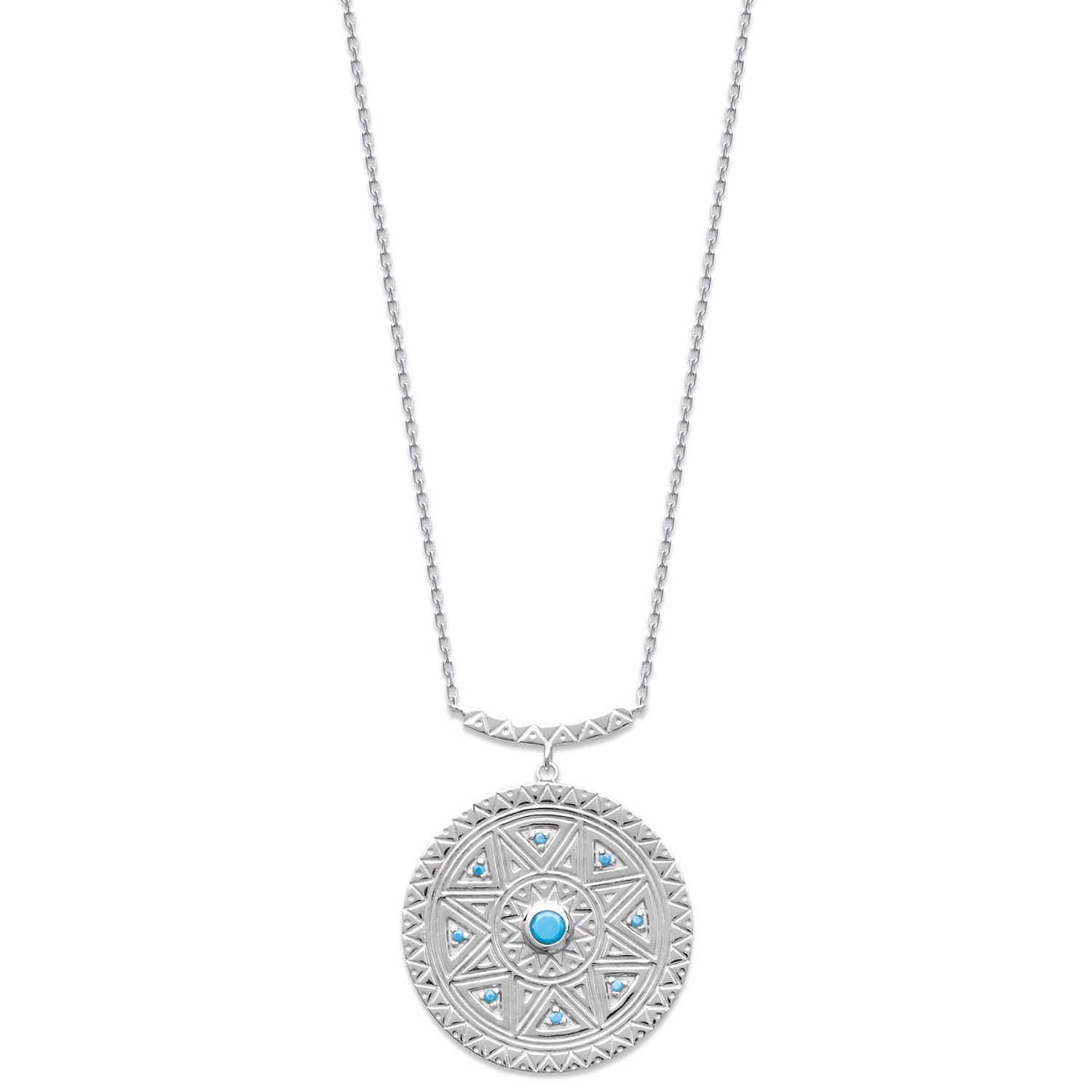 Collier en argent 925/000 rhodié et pierres d'imitation turquoise.