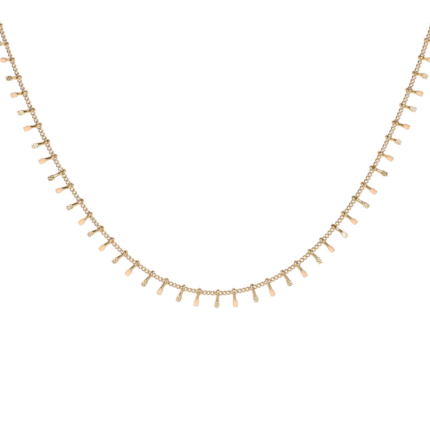 Description Collier avec pampilles en acier doré et émail de couleur. Fermoir mousqueton avec rallonge de 5 cm. Cliquez sur une matière, un thème, une couleur ou une collection pour voir tous les articles associés.