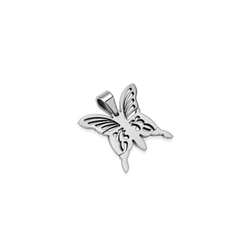Description Pendentif papillon en acier. Largeur 3.50 cm Hauteur 3.20 cm Matière(s) Acier . L'acier utilisé dans la bijouterie existe sous plusieurs qualités. Nous utilisons principalement la qualité 316L, qualité qui est utilisée en chirurgie. Cet acier est donc inoxydable et reste très résistant. Couleur(s) dominante(s) Argenté Public Adolescent , Adulte . Genre Femme , Fille . Saison Indémodable . Thème(s) Animaux . Cliquez sur une matière, un thème, une couleur ou une collection pour voir tous les articles associés.