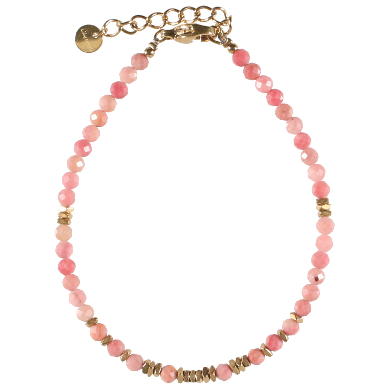 Description Bracelet avec perles en acier doré et perles en véritable pierre de rhodonite. Fermoir mousqueton en acier doré avec 3 cm de rallonge. Cliquez sur une matière, un thème, une couleur ou une collection pour voir tous les articles associés.