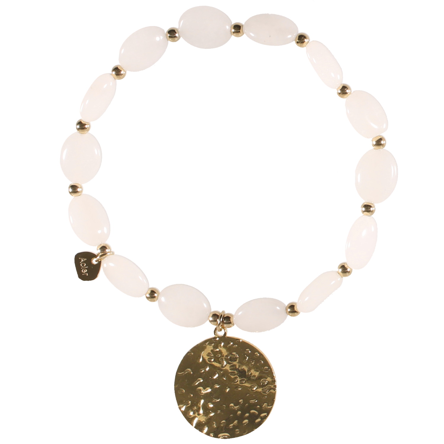 Description Bracelet élastique composé de perles en acier doré, des perles en véritable pierre de jade blanc et d'une pastille ronde martelée en acier doré. Longueur 16 cm [Guide des tailles] Largeur 9 mm Matière(s) Acier , Pierre naturelle . L'acier utilisé dans la bijouterie existe sous plusieurs qualités. Nous utilisons principalement la qualité 316L, qualité qui est utilisée en chirurgie. Cet acier est donc inoxydable et reste très résistant. Fermoir Aucun À noter Pastille 20 mm de diamètre Couleur(s) dominante(s) Blanc , Doré Public Adolescent , Adulte . Genre Femme , Fille . Saison Indémodable . Cliquez sur une matière, un thème, une couleur ou une collection pour voir tous les articles associés.