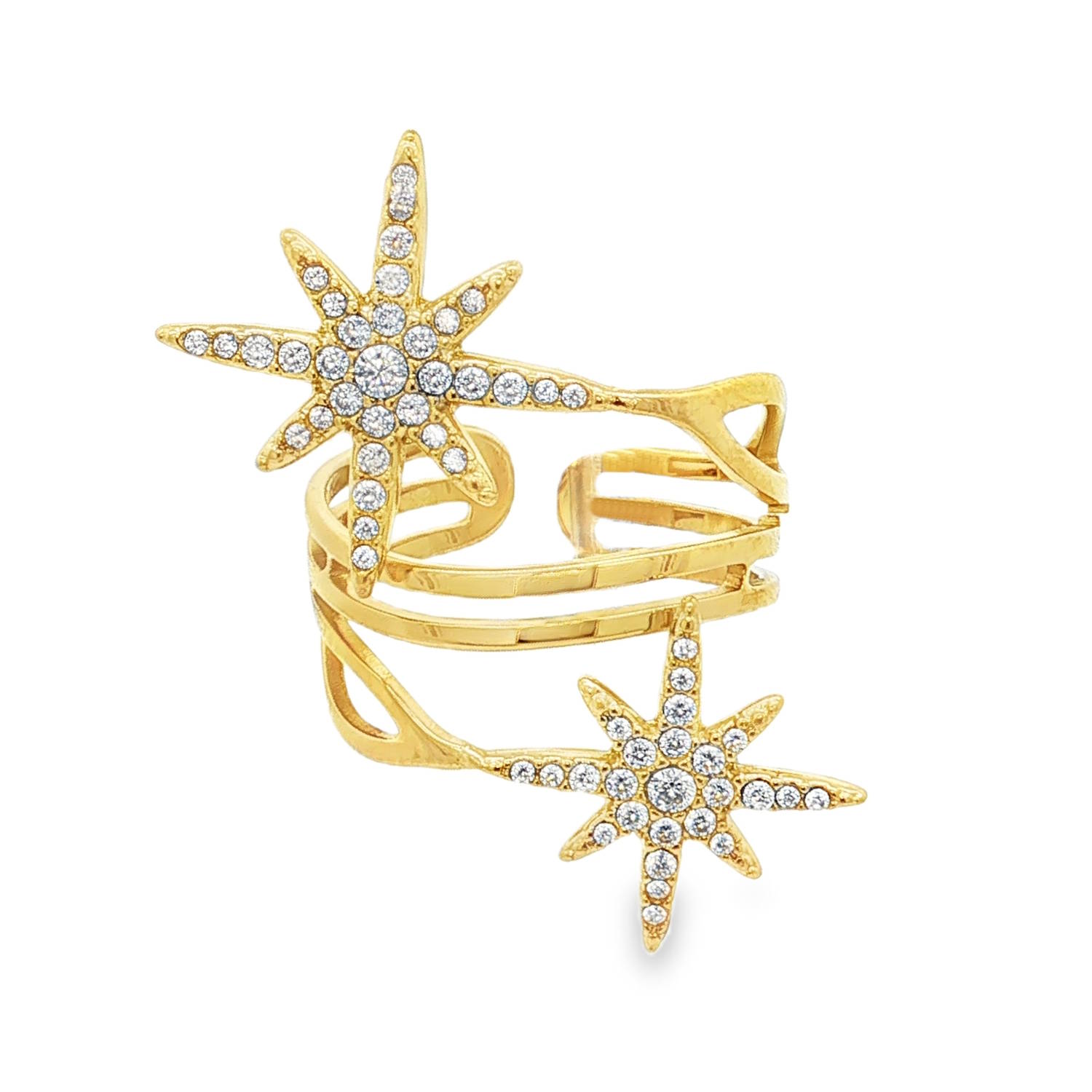 Description Cette bague se distingue par son style multi-rangs à l'aspect superposé, donnant l'illusion de porter plusieurs anneaux fins simultanément. Elle est ornée de deux magnifiques étoiles du Nord de tailles différentes, positionnées de manière asymétrique pour un rendu dynamique et original. Chaque étoile est minutieusement sertie de cristaux scintillants qui capturent la lumière à chaque mouvement, apportant une touche de brillance luxueuse. Sa structure ajustable permet de l'adapter facilement à toutes les morphologies de doigts. Largeur 33 mm Matière(s) Acier , Verre . L'acier utilisé dans la bijouterie existe sous plusieurs qualités. Nous utilisons principalement la qualité 316L, qualité qui est utilisée en chirurgie. Cet acier est donc inoxydable et reste très résistant. Fermoir Aucun Couleur(s) dominante(s) Doré Public Adolescent , Adulte . Genre Femme , Fille . Saison Indémodable . Thème(s) Nature . Cliquez sur une matière, un thème, une couleur ou une collection pour voir tous les articles associés.