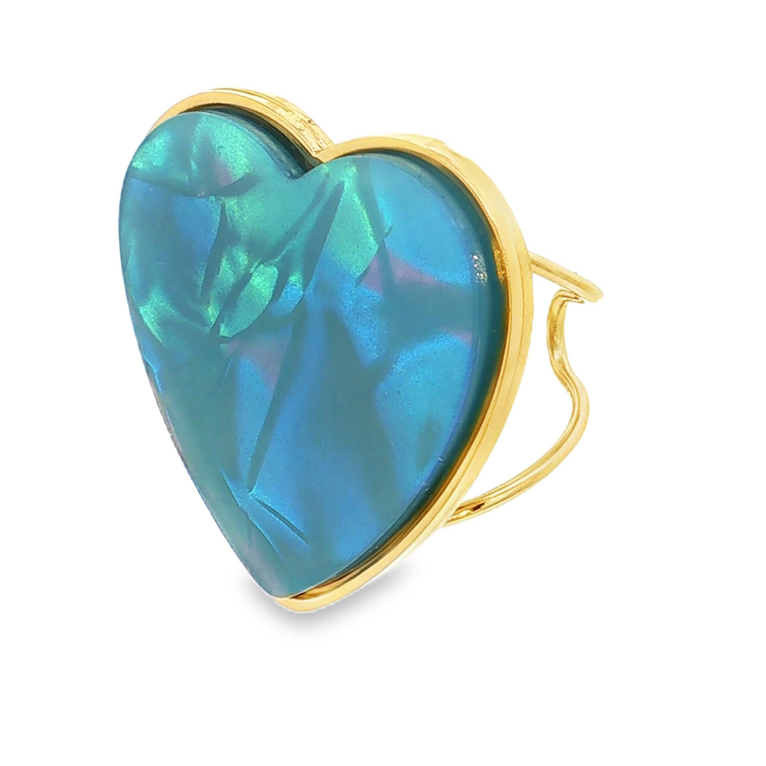Affirmez votre style avec cette bague audacieuse qui allie la force de l’acier à la douceur d’un symbole universel. Ce bijou se distingue par son imposant cabochon en forme de cœur, offrant un éclat unique et une présence irrésistible au doigt.<br/>Le cœur central arbore une texture fascinante aux nuances bleu turquoise et aigue-marine. Grâce à ses effets marbrés et irisés, la pierre capte la lumière sous tous les angles, rappelant les reflets changeants de l'océan ou les profondeurs d'une opale précieuse.<br/>Sa structure ajustable permet de l'adapter facilement à toutes les morphologies de doigts. Coeur  Adolescent Adulte Amour Femme Fille Indémodable