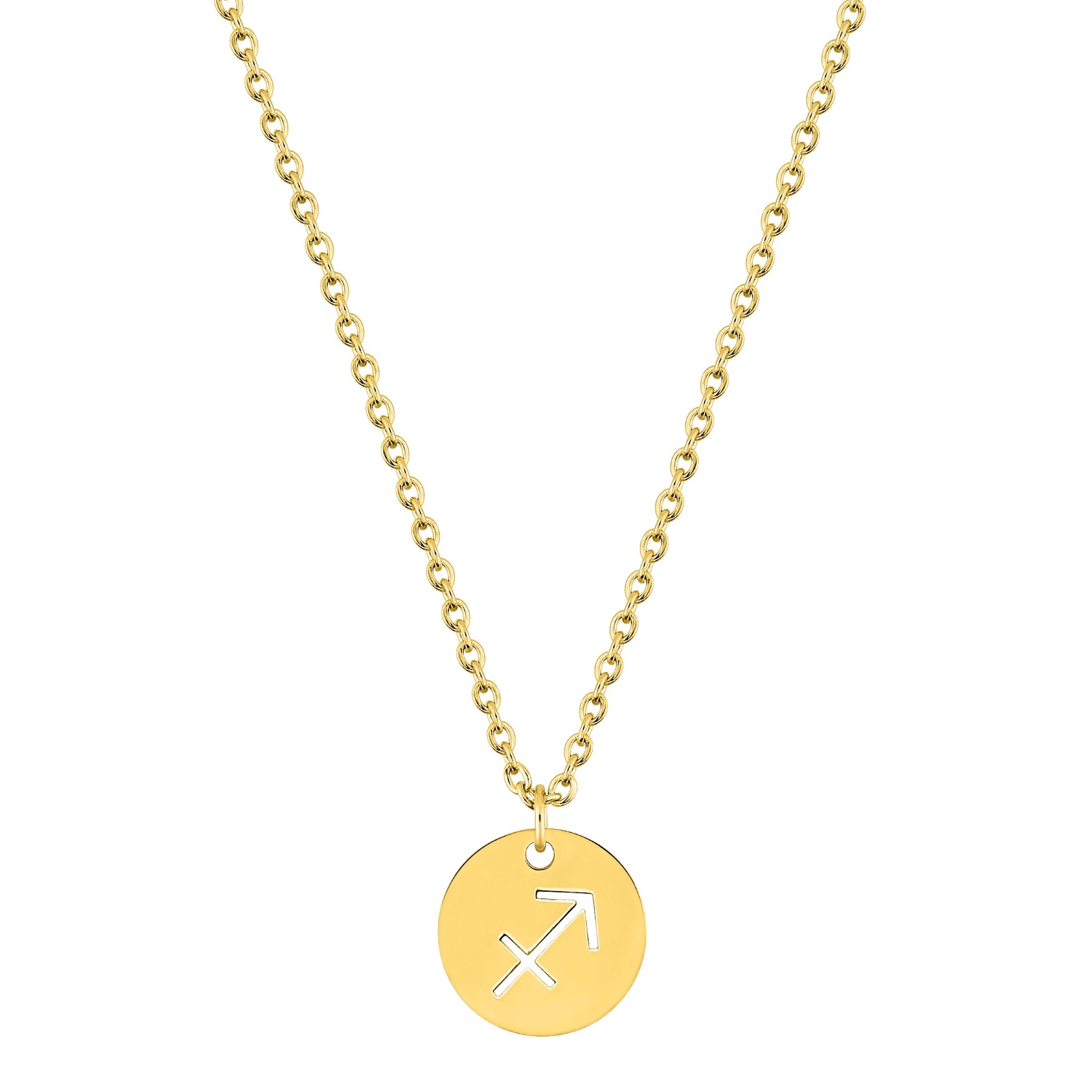 Description Magnifique collier chaîne en acier doré avec un pendentif rond gravé du signe astrologique du sagittaire. Fermoir mousqueton avec 5 cm de rallonge. Longueur 40+5 cm [Guide des tailles] Diamètre 12 mm Matière(s) Acier . L'acier utilisé dans la bijouterie existe sous plusieurs qualités. Nous utilisons principalement la qualité 316L, qualité qui est utilisée en chirurgie. Cet acier est donc inoxydable et reste très résistant. Fermoir Mousqueton Couleur(s) dominante(s) Doré Public Adolescent , Adulte . Genre Femme , Fille . Saison Indémodable . Thème(s) Astrologie . Cliquez sur une matière, un thème, une couleur ou une collection pour voir tous les articles associés.