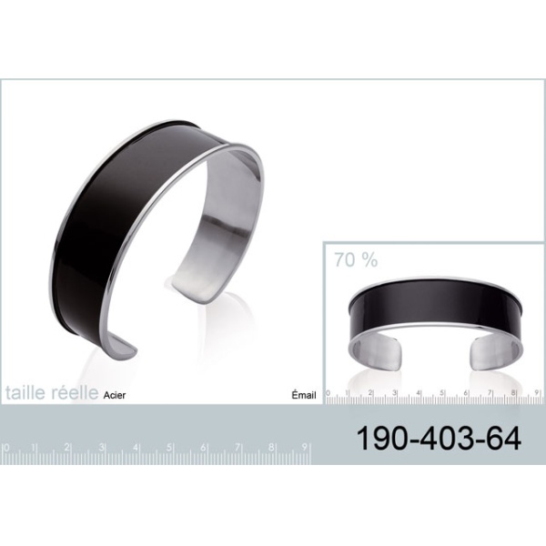 Description Bracelet jonc rigide en acier et émail. Largeur 20 mm Diamètre 64 mm [Guide des tailles] Matière(s) Acier , Email . L'acier utilisé dans la bijouterie existe sous plusieurs qualités. Nous utilisons principalement la qualité 316L, qualité qui est utilisée en chirurgie. Cet acier est donc inoxydable et reste très résistant. Fermoir Aucun Couleur(s) dominante(s) Noir Public Adulte . Genre Femme . Saison Indémodable . Cliquez sur une matière, un thème, une couleur ou une collection pour voir tous les articles associés.