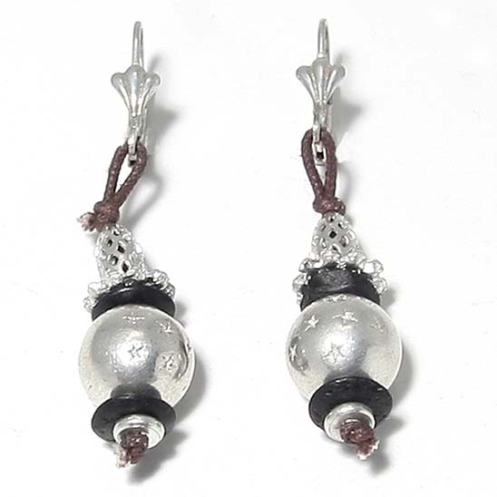 Boucles d'oreilles fantaisie en métal argenté vieilli et matières mélangées.