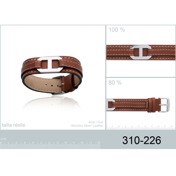 Description Bracelet en acier et cuir. Longueur 19 cm [Guide des tailles] Largeur 18 mm Matière(s) Acier , Cuir . L'acier utilisé dans la bijouterie existe sous plusieurs qualités. Nous utilisons principalement la qualité 316L, qualité qui est utilisée en chirurgie. Cet acier est donc inoxydable et reste très résistant. Fermoir Ceinture Couleur(s) dominante(s) Marron Public Adulte . Genre Femme . Saison Indémodable . Cliquez sur une matière, un thème, une couleur ou une collection pour voir tous les articles associés.