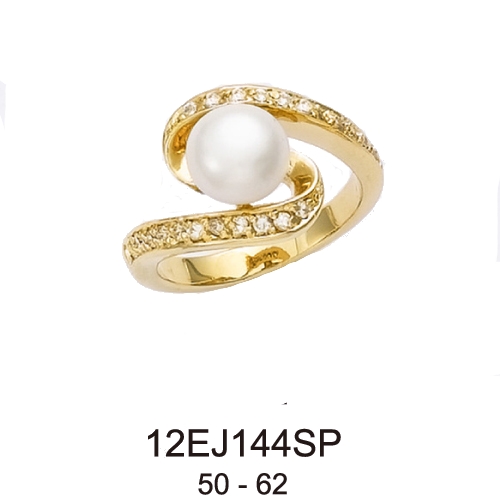 Bague en plaqué or, oxyde de zirconium et perle synthétique.