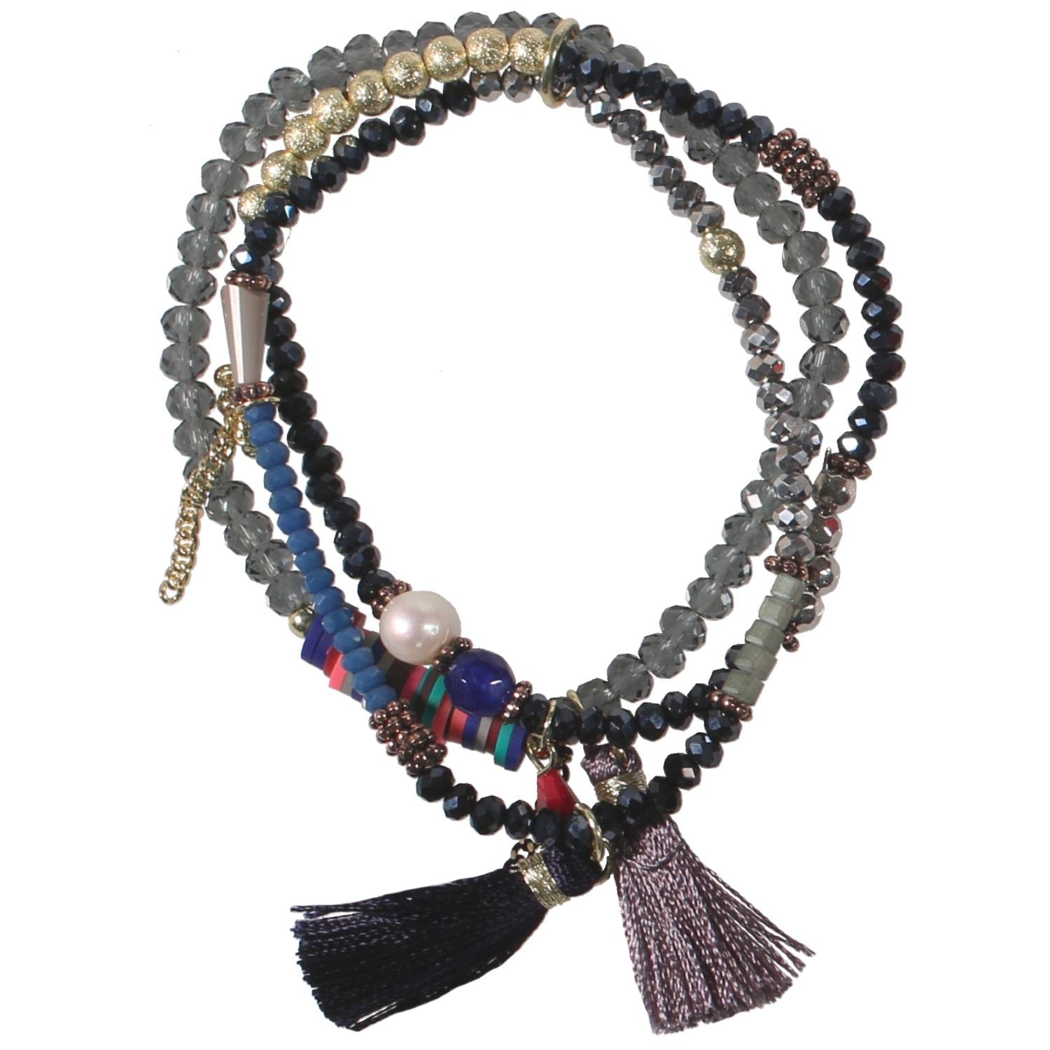 Bracelet fantaisie en métal doré, métal rosé, métal peint, rocaille, résine et textile.