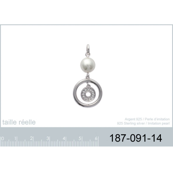 Pendentif en argent 925/000 rhodié, oxyde de zirconium et perle d'imitation.