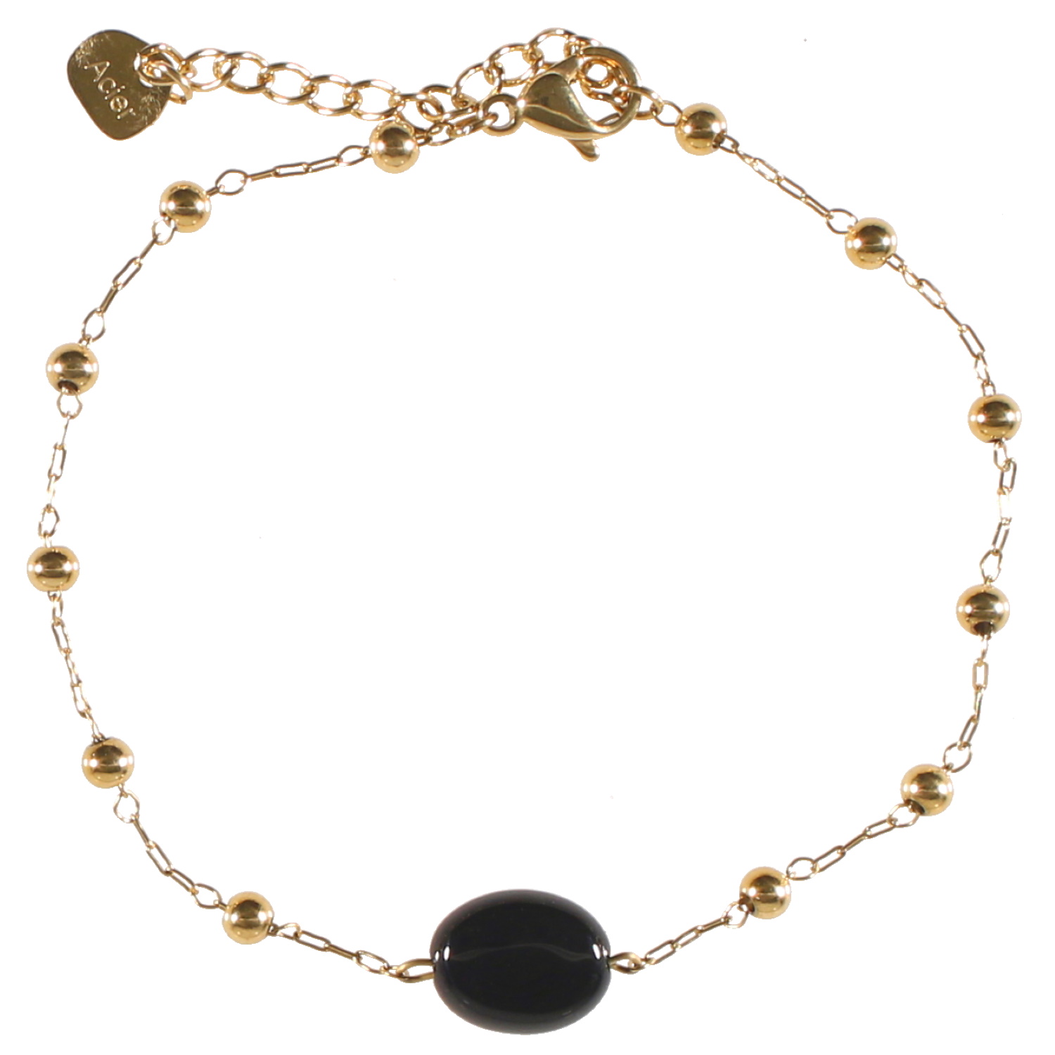 Bracelet composé d'une chaîne avec perles en acier doré et une véritable pierre d'agate noire.