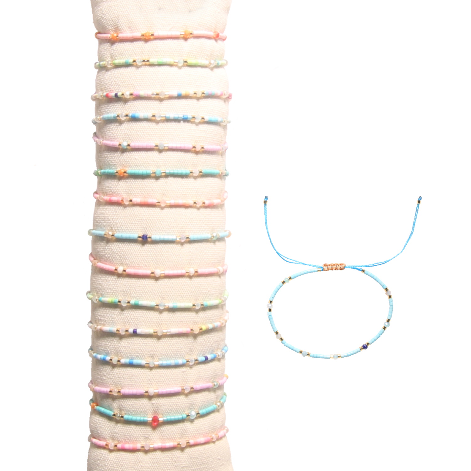 Bracelet fantaisie composé d'un cordon en coton de couleur, de perles Miyuki multicolores et de cristaux de couleur.