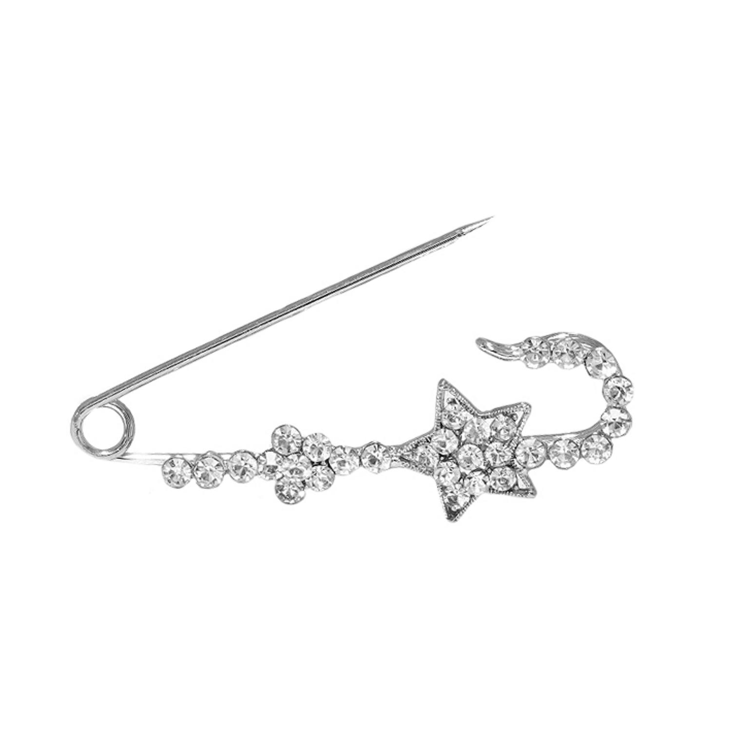 Description Broche fantaisie en métal argenté et cristaux synthétiques. Cliquez sur une matière, un thème, une couleur ou une collection pour voir tous les articles associés.