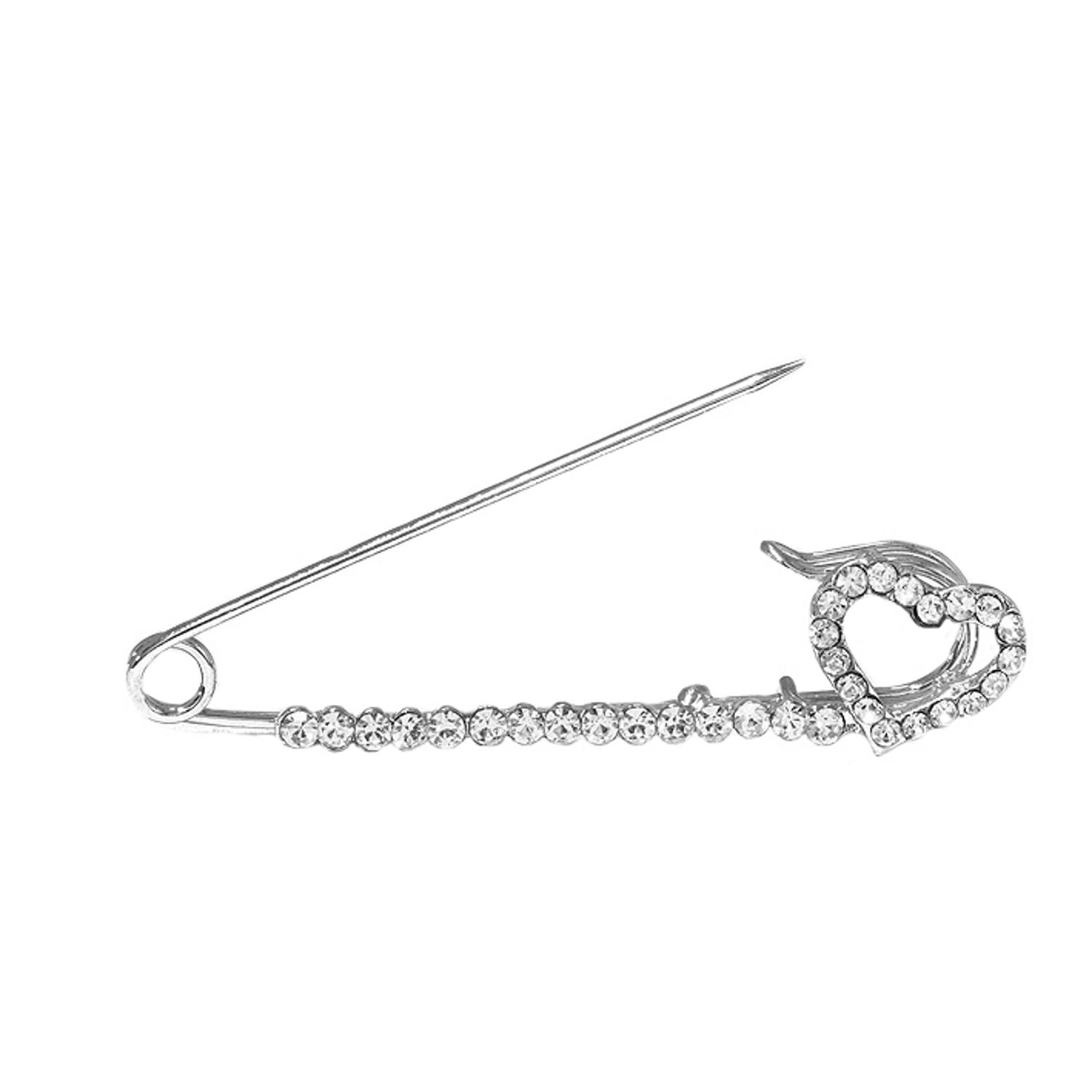 Broche fantaisie en métal argenté et cristaux synthétiques.