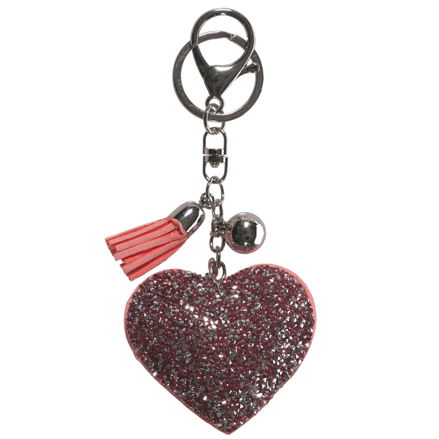 Porte-clés fantaisie Cœur en métal argenté, suédine et cristaux synthétiques.
