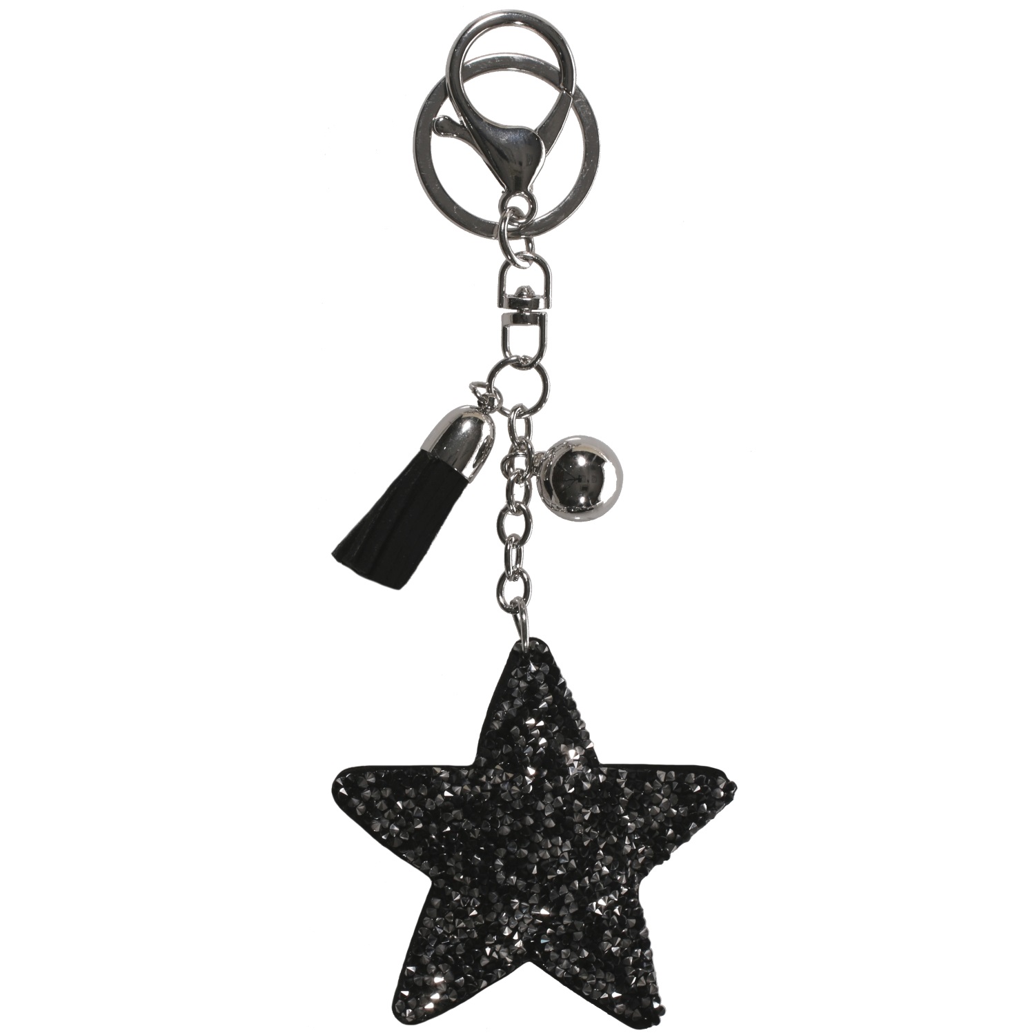Porte-clés fantaisie Etoile en métal argenté, suédine et cristaux synthétiques.