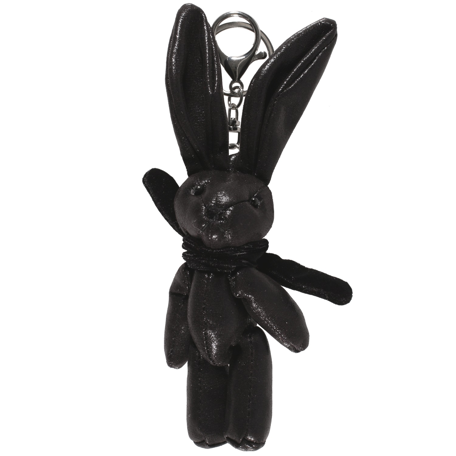 Porte-clés fantaisie Lapin avec écharpe en métal argenté et textile.