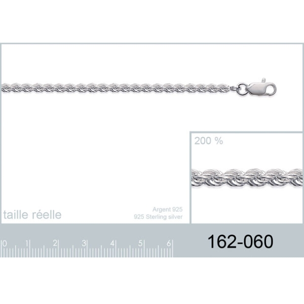 Description Chaîne en argent 925/000. Longueur 70 cm [Guide des tailles] Largeur 3 mm Maille Corde ronde Matière(s) Argent 925 . Les bijoux en argent que nous vous proposons sont faits d'argent 925/000. C'est-à-dire que chaque gramme de métal est composé de 92.5% d'argent pur et de 7.5 % d'autres métaux (essentiellement du cuivre). En effet, sous sa forme pure (soit 100%), l'argent est trop mou et ne peut être suffisamment rigide pour tenir sous forme de bijou. Nous le mêlons donc à d'autres métaux. Nous apposons un poinçon 925 sur tous nos bijoux afin de vous garantir que chaque création est bien en argent 925. Poids d'argent 19,43 gramme(s) Fermoir Mousqueton À noter Longueur 70 cm Couleur(s) dominante(s) Argenté Public Adulte . Genre Femme . Saison Indémodable . Rayon en magasin T11 Cliquez sur une matière, un thème, une couleur ou une collection pour voir tous les articles associés.