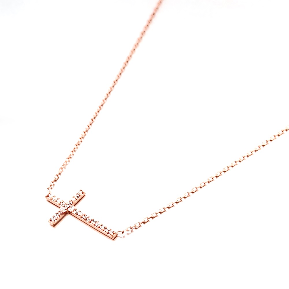Collier Croix en plaqué or rosé et oxyde de zirconium.