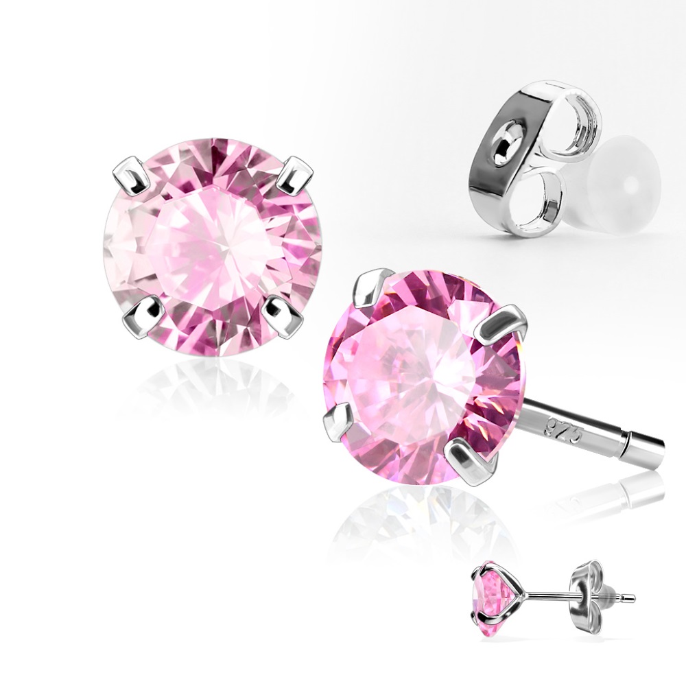 Boucles d'oreilles en argent 925/000 et oxyde de zirconium de couleur rose.