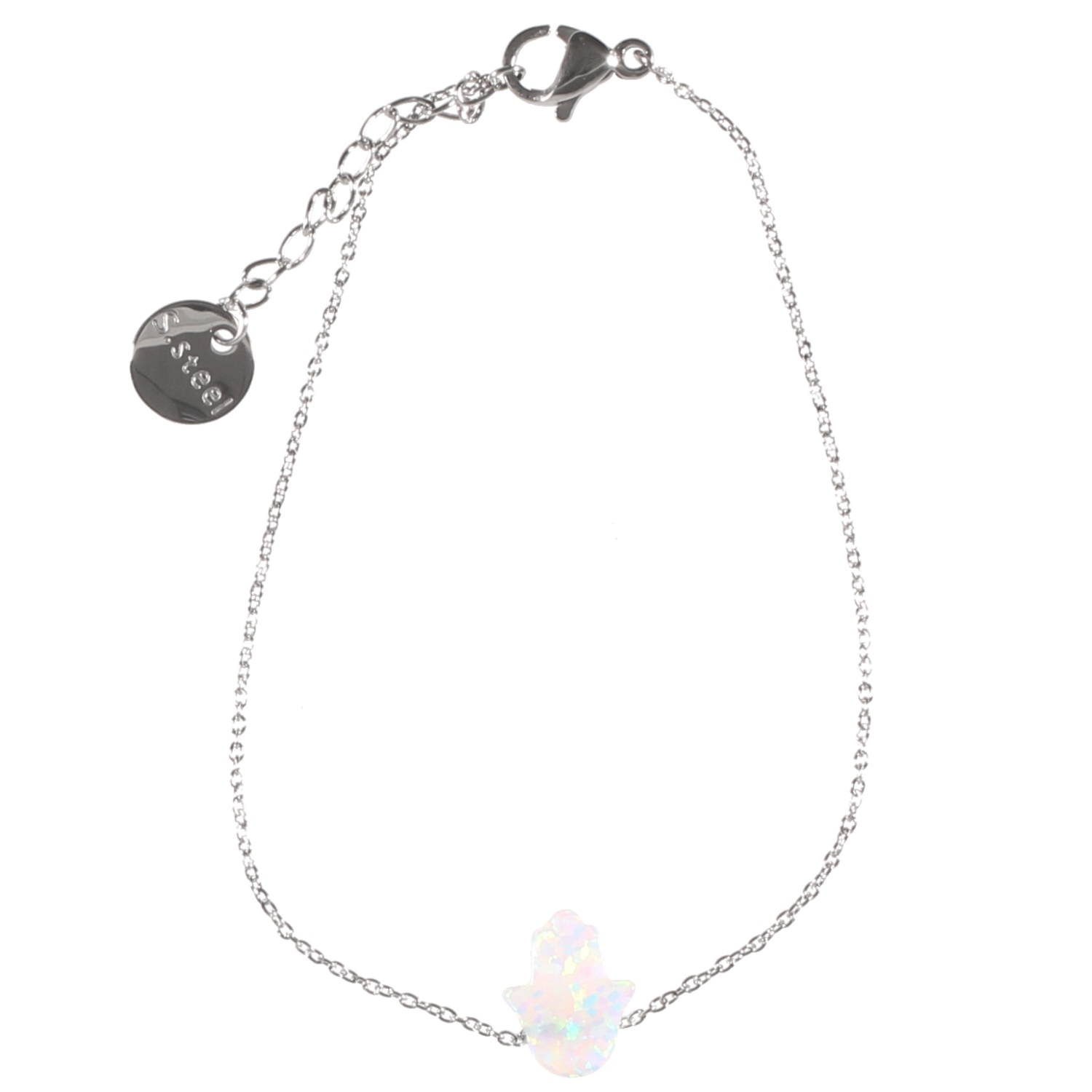Bracelet en acier et main de Fatma en pierre semi précieuse opale blanche. Fatma Main  Adolescent Adulte Femme Fille Indémodable Religion Symboles