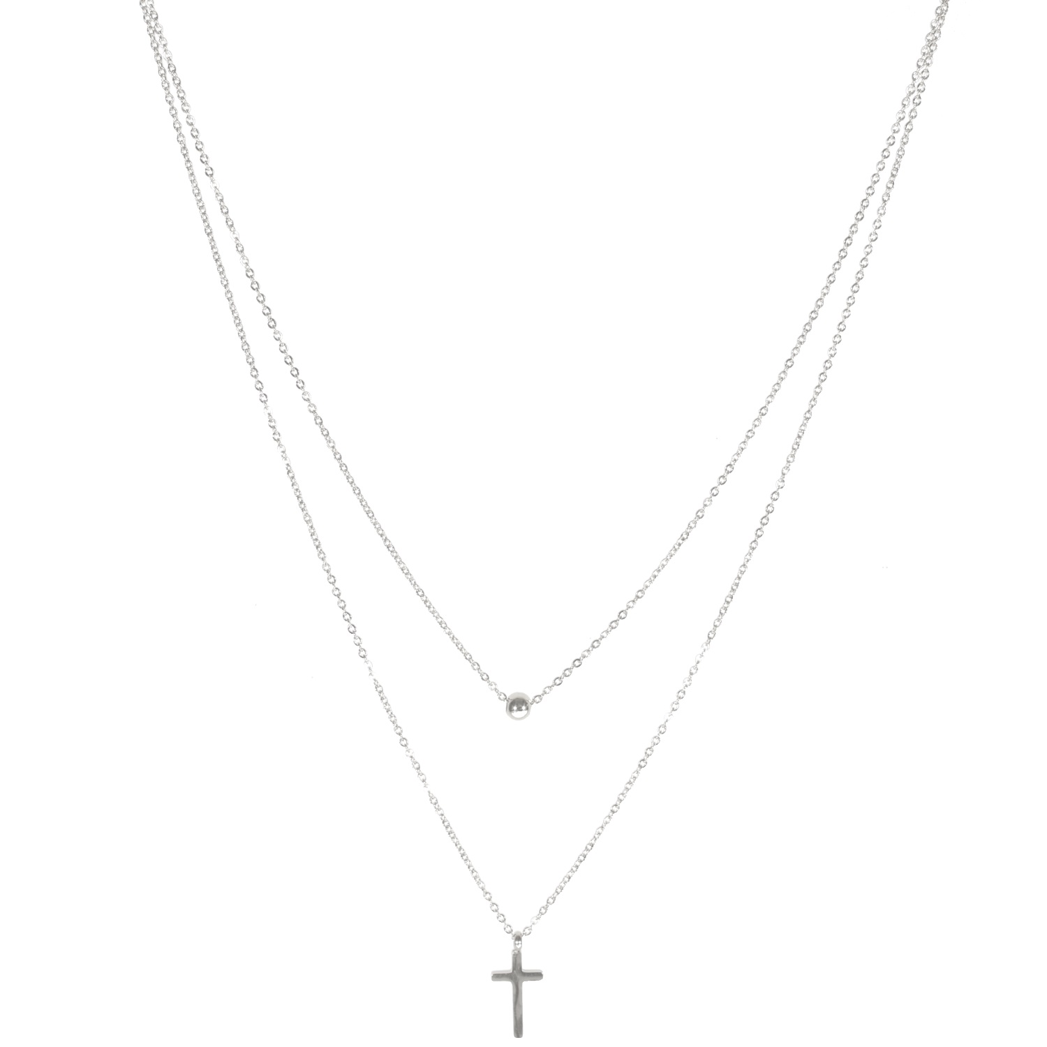 Description Collier multi rangs avec boule et pendentif croix en acier argenté. 2 rangs. Longueur 37.5+5 cm [Guide des tailles] Largeur 5 mm Matière(s) Acier . L'acier utilisé dans la bijouterie existe sous plusieurs qualités. Nous utilisons principalement la qualité 316L, qualité qui est utilisée en chirurgie. Cet acier est donc inoxydable et reste très résistant. Fermoir Mousqueton À noter Pendentif croix 15 mm x 7 mm Couleur(s) dominante(s) Argenté Public Adolescent , Adulte . Genre Femme , Fille . Saison Indémodable . Thème(s) Religion , Symboles . Cliquez sur une matière, un thème, une couleur ou une collection pour voir tous les articles associés.
