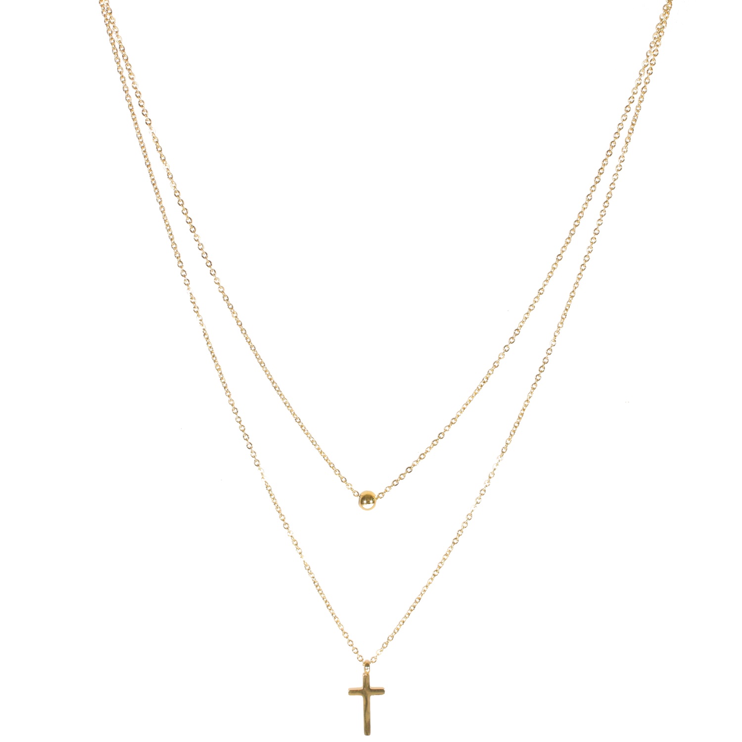 Description Collier multi rangs avec boule et pendentif croix en acier doré. 2 rangs. Longueur 37.5+5 cm [Guide des tailles] Largeur 5 mm Matière(s) Acier . L'acier utilisé dans la bijouterie existe sous plusieurs qualités. Nous utilisons principalement la qualité 316L, qualité qui est utilisée en chirurgie. Cet acier est donc inoxydable et reste très résistant. Fermoir Mousqueton À noter Pendentif croix 15 mm x 7 mm Couleur(s) dominante(s) Doré Public Adolescent , Adulte . Genre Femme , Fille . Saison Indémodable . Thème(s) Religion , Symboles . Cliquez sur une matière, un thème, une couleur ou une collection pour voir tous les articles associés.