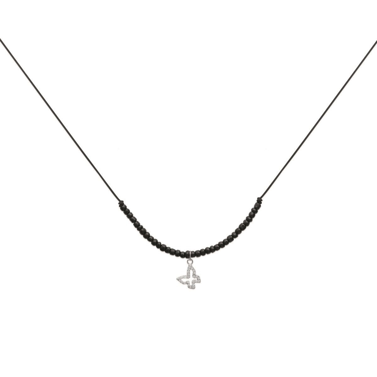 Collier en argent 925/000 rhodié, oxyde de zirconium et coton.