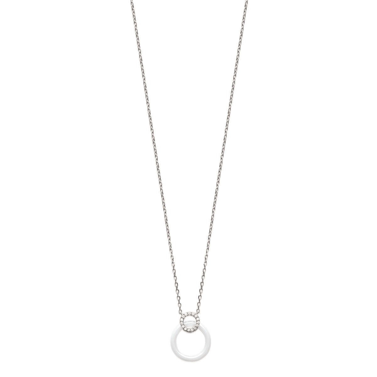 Collier en argent 925/000 rhodié, oxyde de zirconium et céramique.